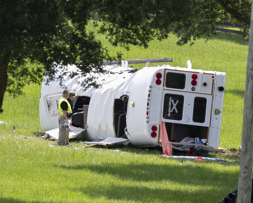 FORT LAUDERDALE, Fla. (AP) — A bus carrying farmworkers to a watermelon field in central Florida was sideswiped by a drunk driver and overturned in a field, killing eight people and injuring dozens of others, authorities said.