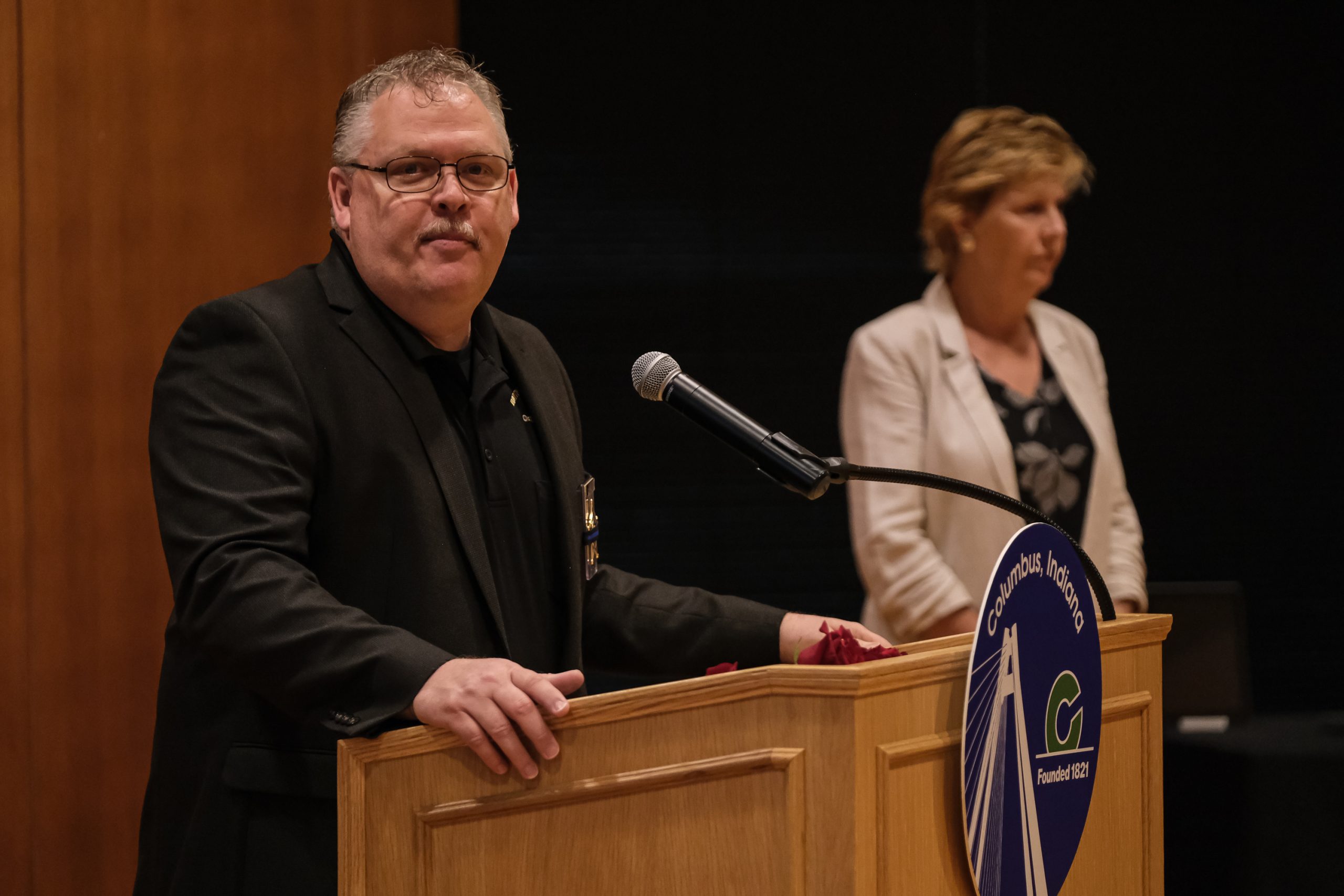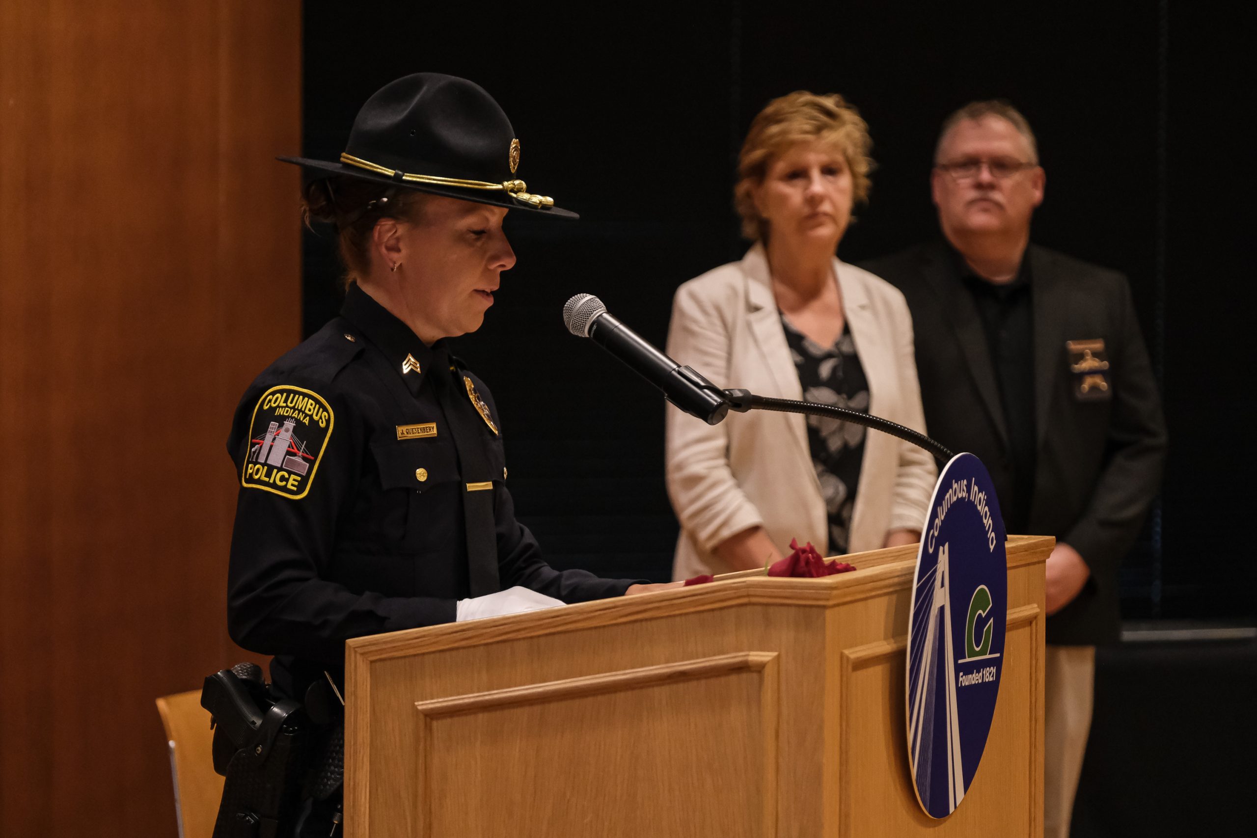 Members of the Columbus Police Department, Columbus Fire Department and Bartholomew County Sheriff’s Office gathered at Columbus City Hall to pay their respects to public safety and law enforcement officials from across the country that died over the past year.