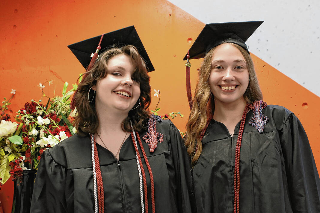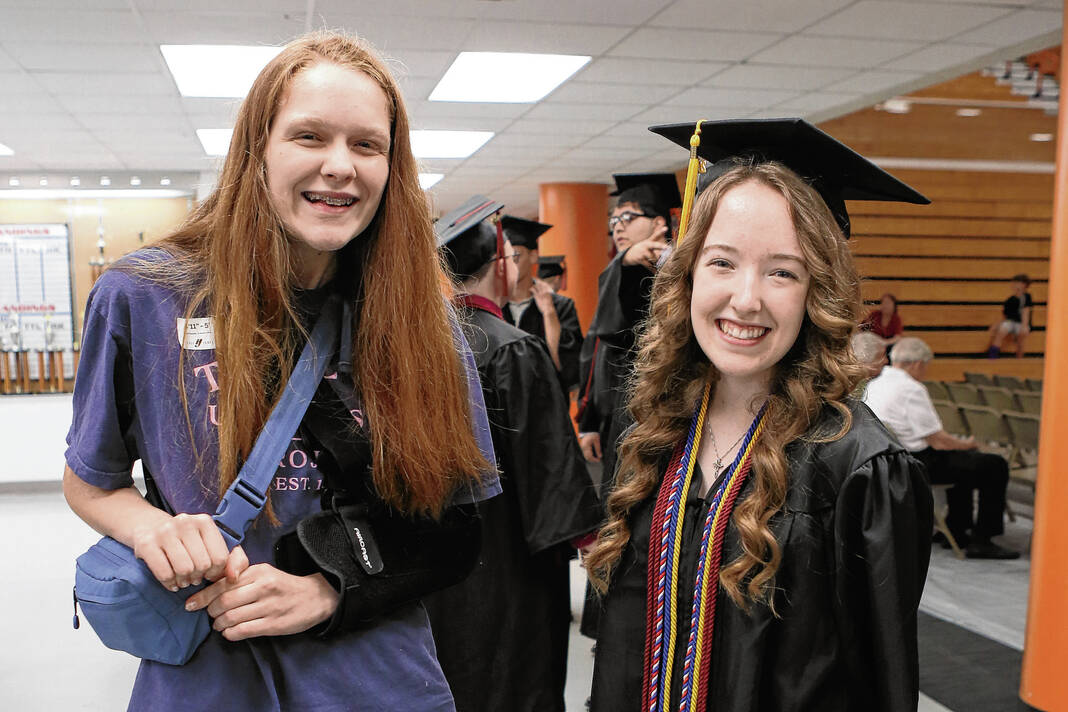 Carla Clark | For The Republic Annalace Wright and Savannah Shreve pose for a photograph. Wright and Shreve, who is graduating as a Junior, will be college roommates in the fall. Photo taken during the CSA New Tech Commencement Ceremony at Columbus East High School, Columbus, Ind., Friday, May 24, 2024.
