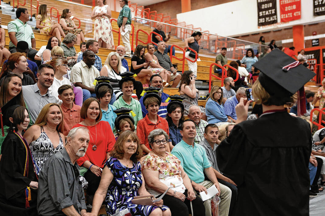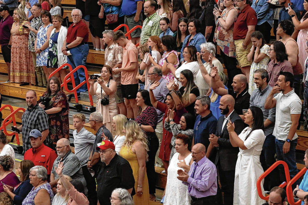 Carla Clark | For The Republic Family and friends cheer and take photos during the graduates procession into the gym during the CSA New Tech Commencement Ceremony at Columbus East High School, Columbus, Ind., Friday, May 24, 2024.