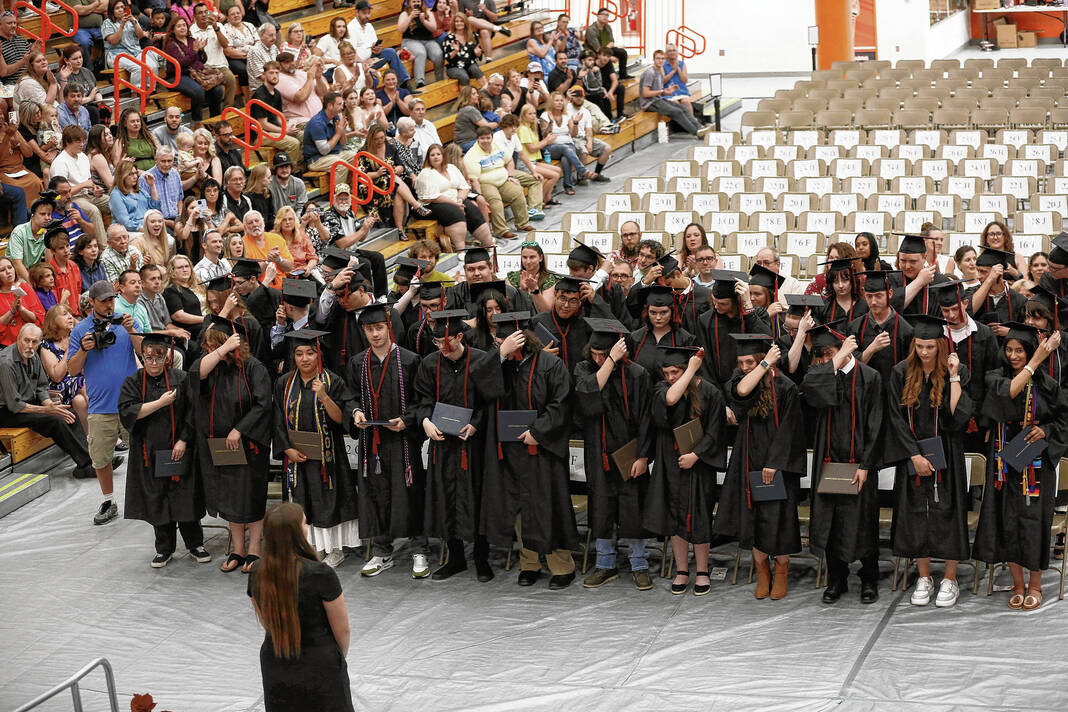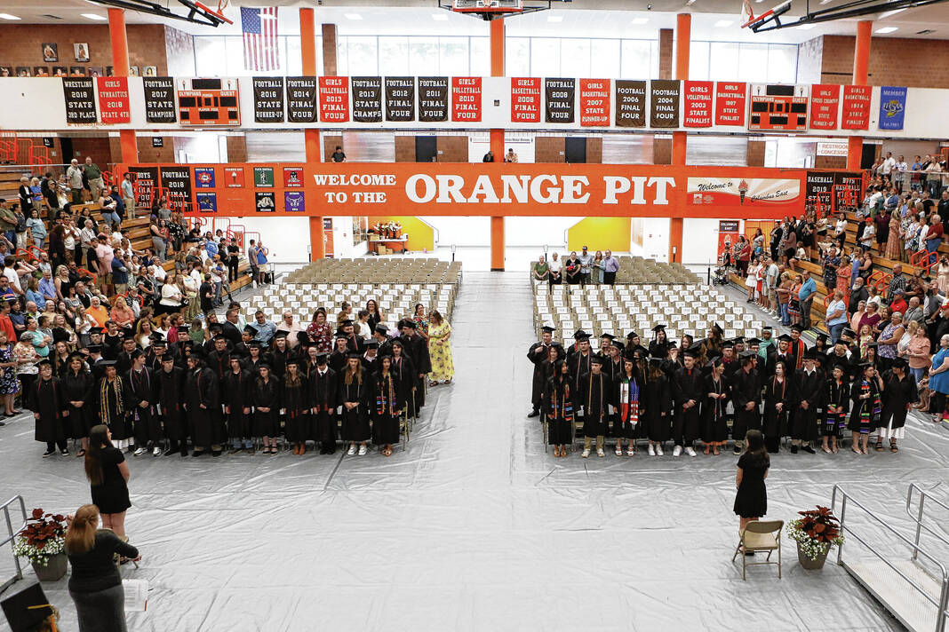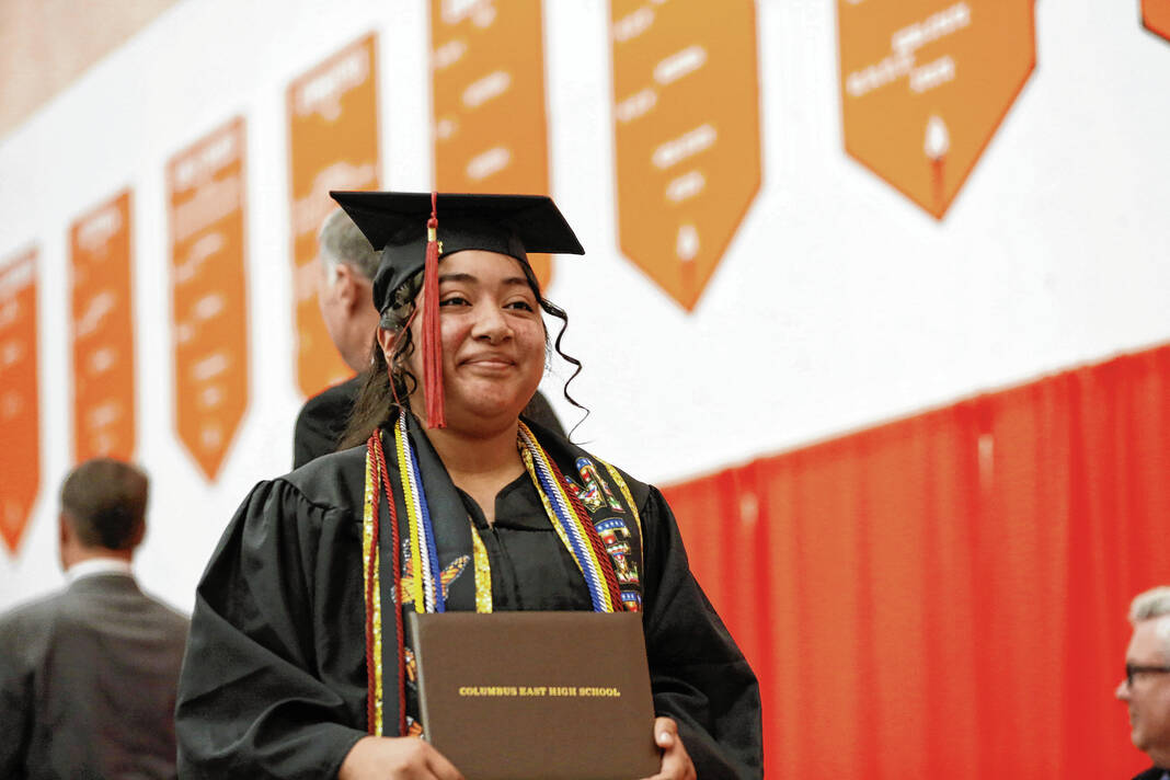 The 75-student class of Dragons held the commencement ceremony in Columbus East High School’s gym as friends and family looked on.
