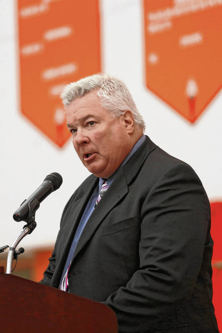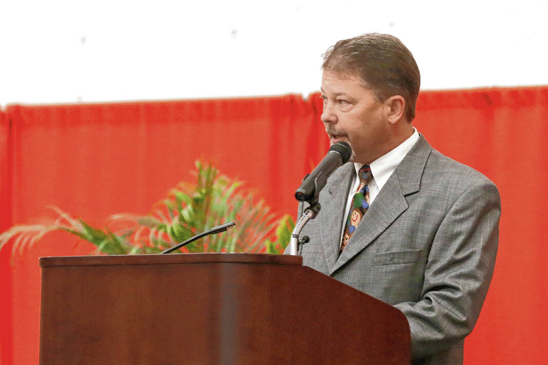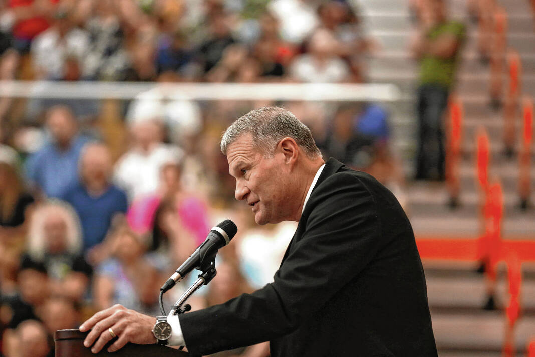 Carla Clark | For The Republic Dr. Jim Roberts gives the superintendent comments during the CSA New Tech Commencement Ceremony at Columbus East High School, Columbus, Ind., Friday, May 24, 2024.