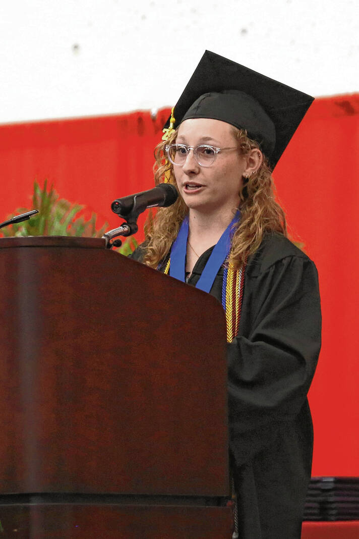 Carla Clark | For The Republic Sophie Rafferty gives the student welcome during the CSA New Tech Commencement Ceremony at Columbus East High School, Columbus, Ind., Friday, May 24, 2024.