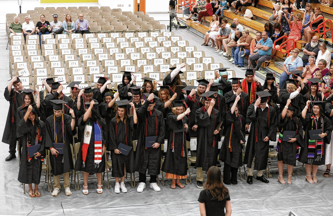 Carla Clark | For The Republic The turning of the tassels during the CSA New Tech Commencement Ceremony at Columbus East High School, Columbus, Ind., Friday, May 24, 2024.