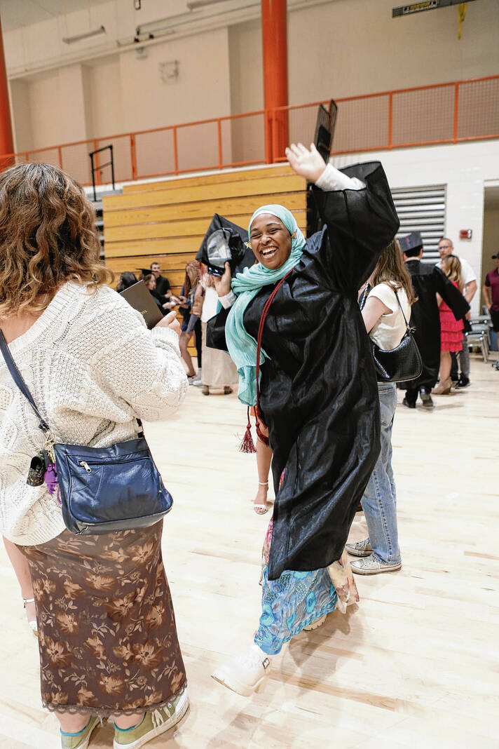 Carla Clark | For The Republic Layla Sanders dances as she celebrates her graduation during the CSA New Tech Commencement Ceremony at Columbus East High School, Columbus, Ind., Friday, May 24, 2024.