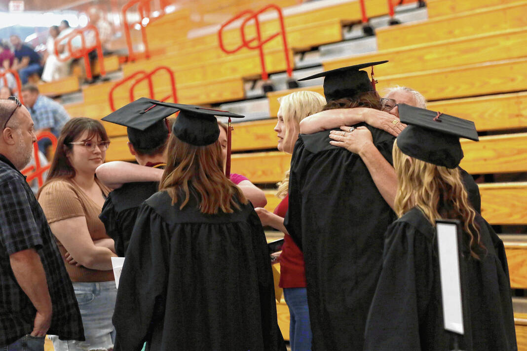 Carla Clark | For The Republic Graduates hug family and friends during the CSA New Tech Commencement Ceremony at Columbus East High School, Columbus, Ind., Friday, May 24, 2024.
