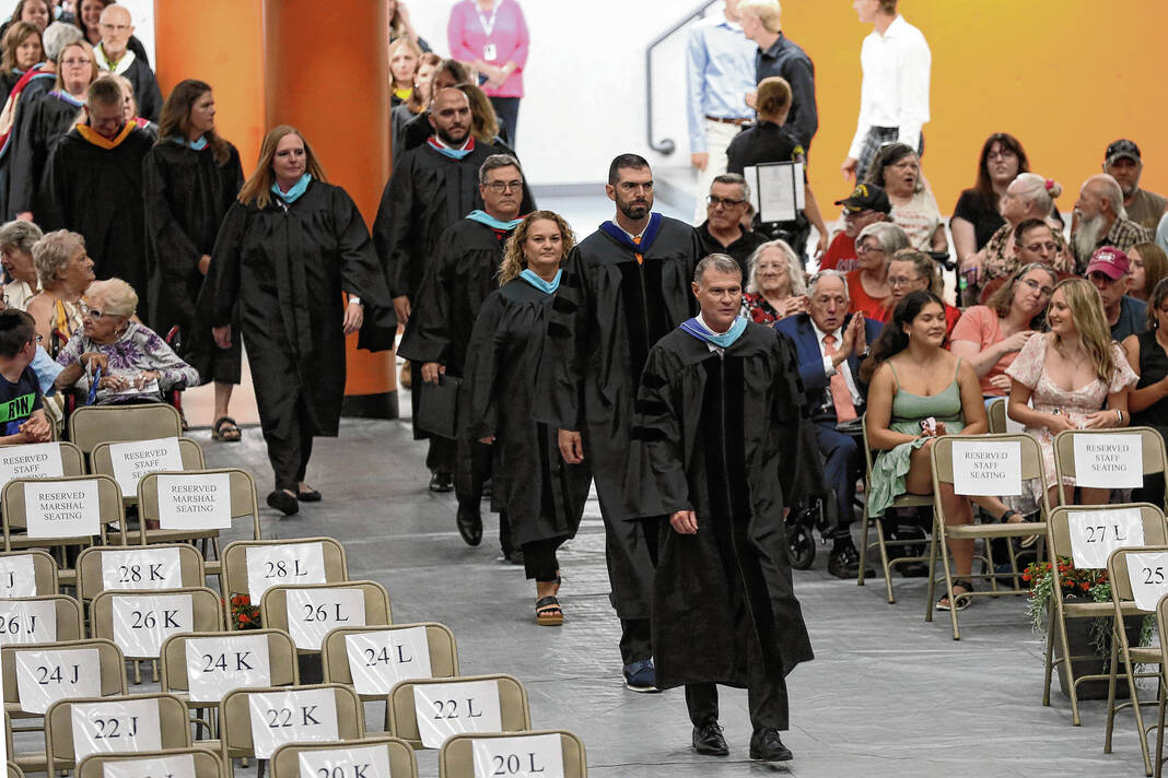 Carla Clark | For The Republic BCSC Superintendent Dr. Jim Roberts leads the building leaders, staff and teachers into the gym during the 51st Annual Commencement of Columbus East High School, Columbus, Ind., Saturday, May 25, 2024.