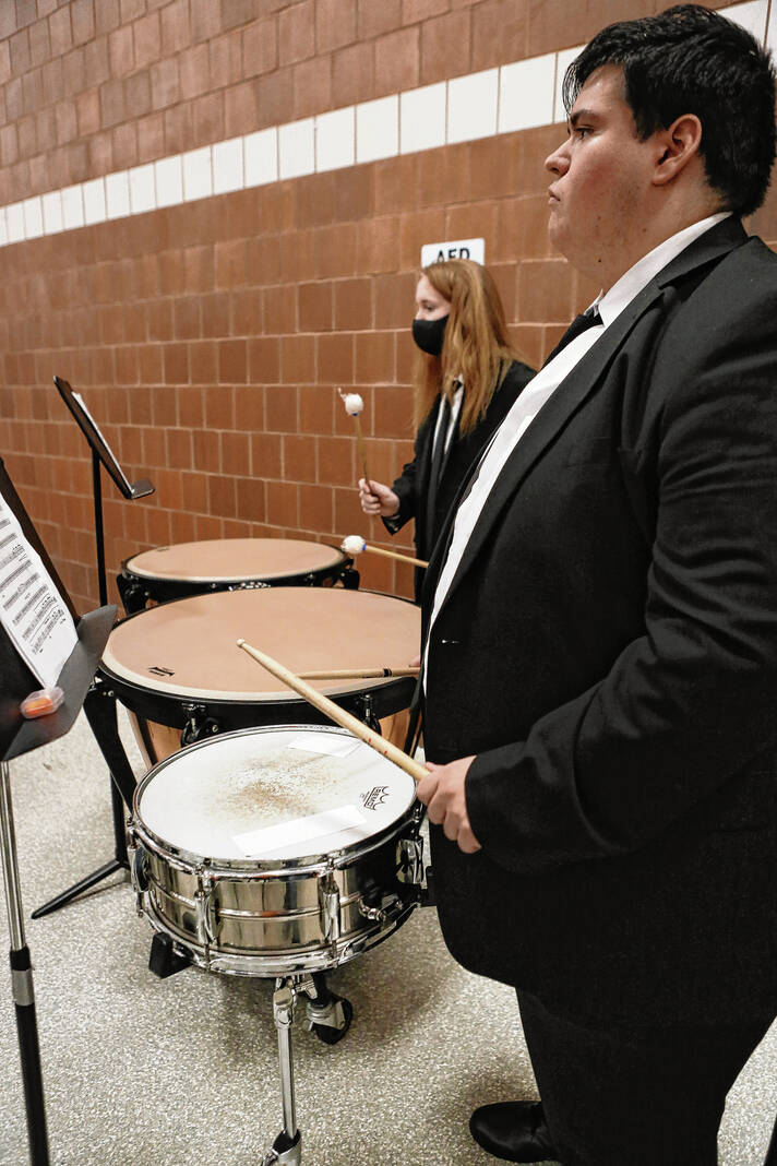 Carla Clark | For The Republic Percussionists Philip Mattern and Ivan Jones keep the beat for Pomp and Circumstance during the processional for the 51st Annual Commencement of Columbus East High School, Columbus, Ind., Saturday, May 25, 2024.