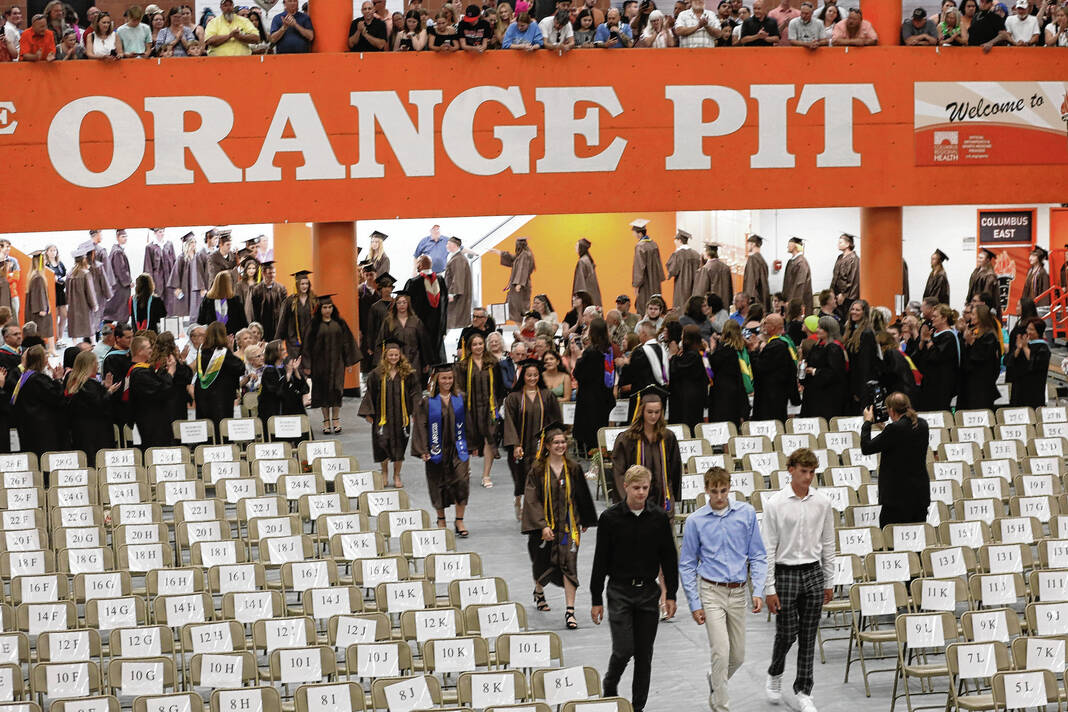 Carla Clark | For The Republic Members of the graduating class file into the gym to the sound of “Pomp and Circumstance” during the 51st Annual Commencement of Columbus East High School, Columbus, Ind., Saturday, May 25, 2024.