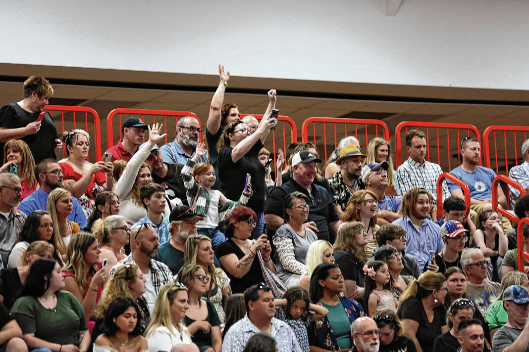 Carla Clark | For The Republic Attendees yell and wave as graduates enter the gym during the 51st Annual Commencement of Columbus East High School, Columbus, Ind., Saturday, May 25, 2024.