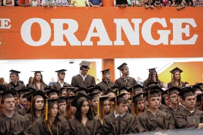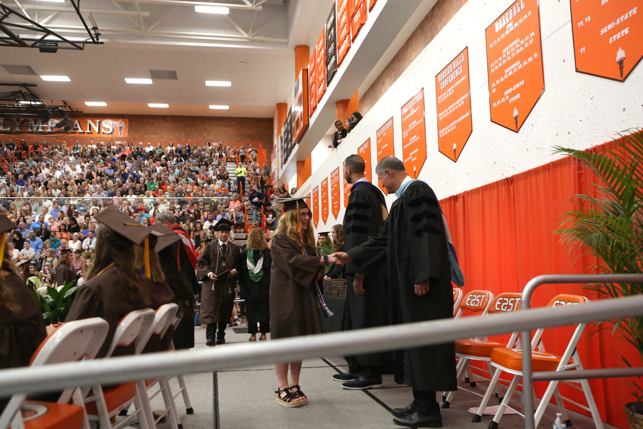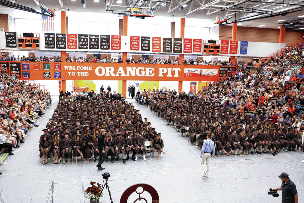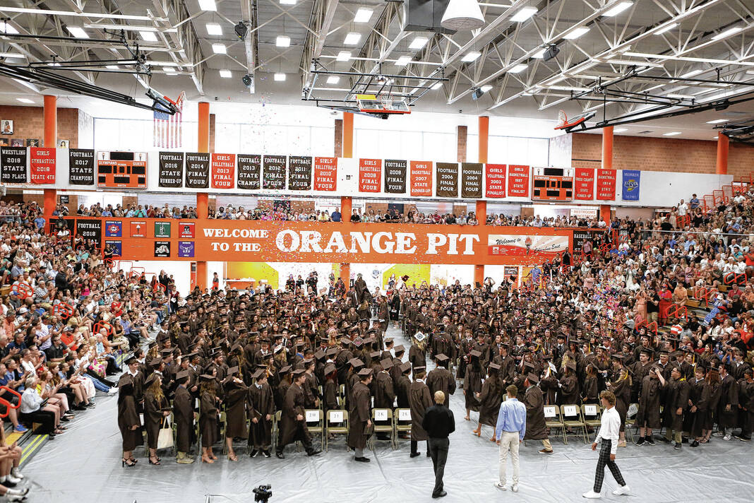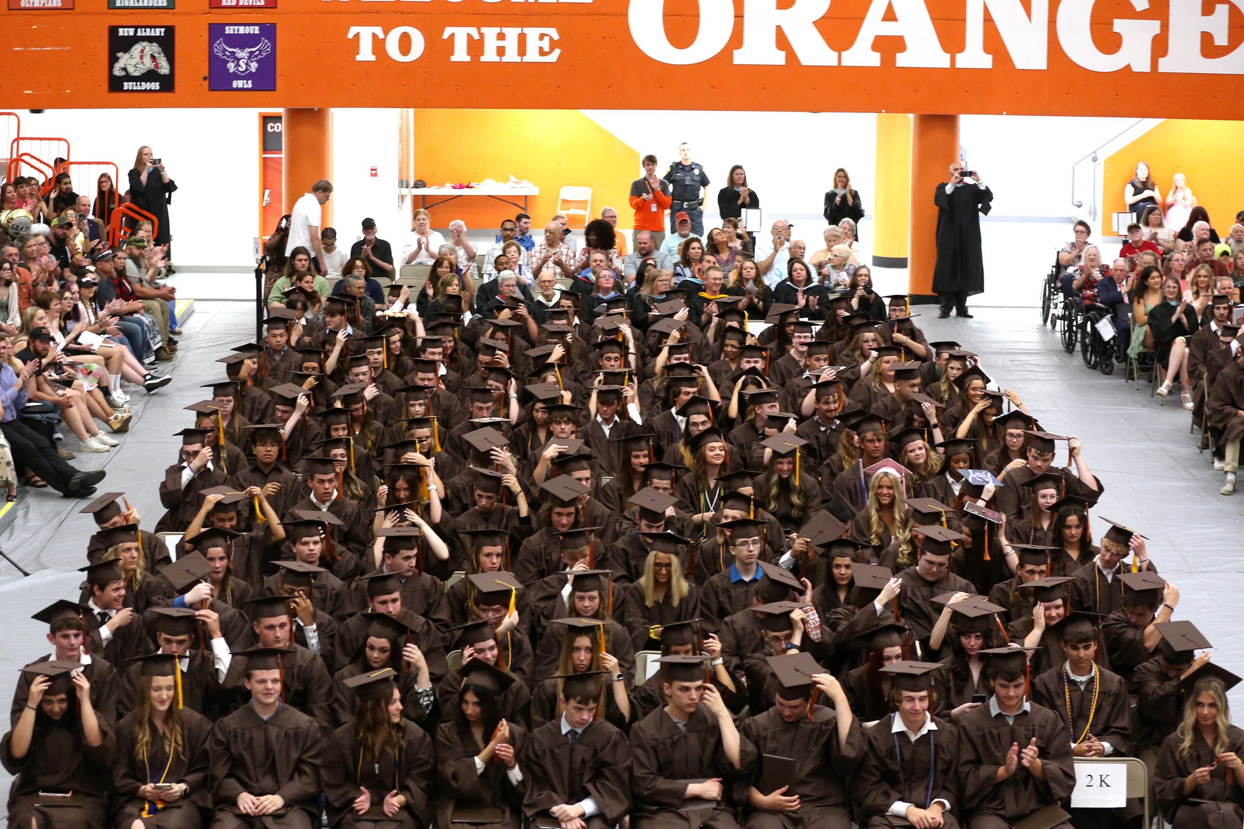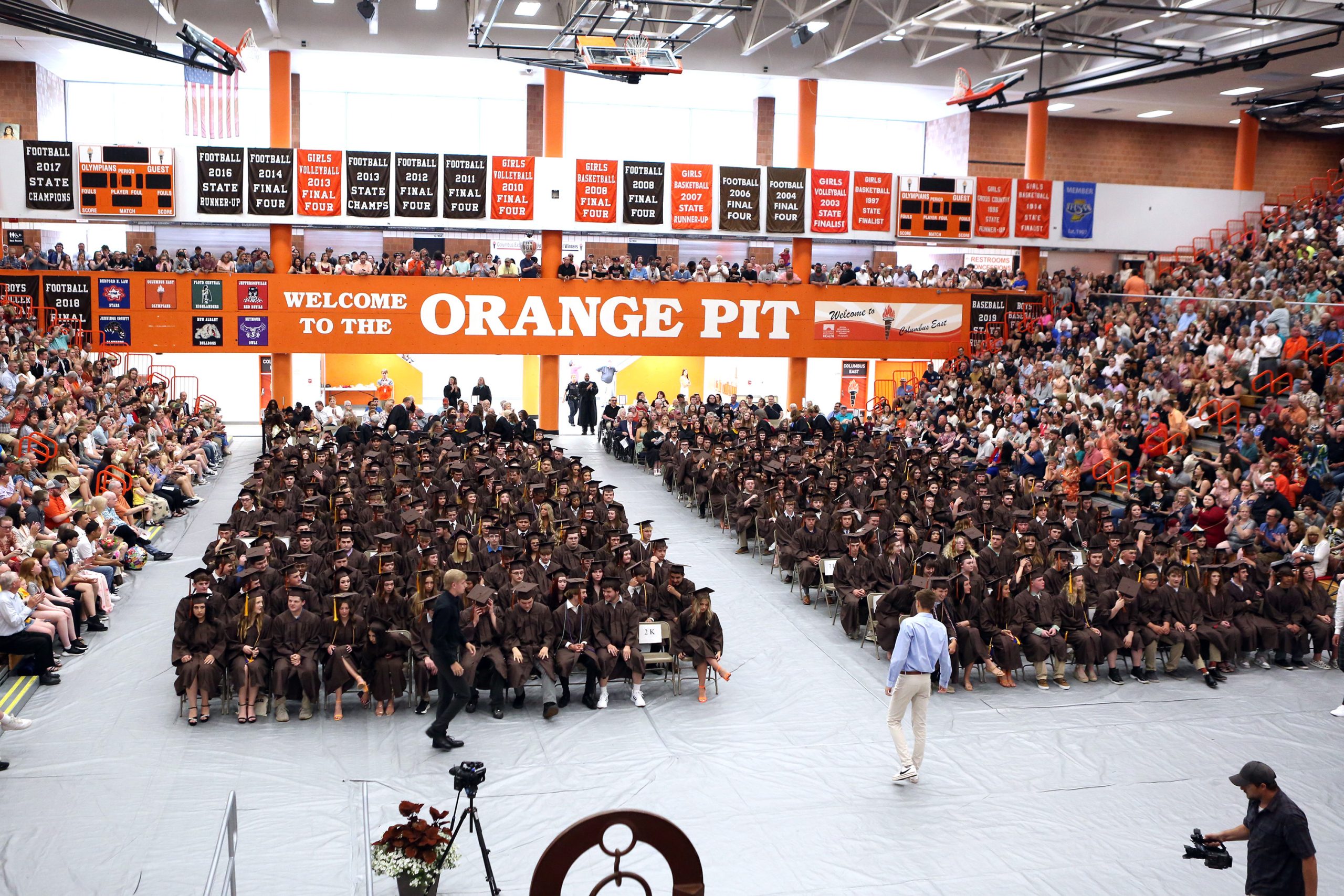 The 384 graduating Olympians gave a final send off to their high school careers in East’s main gymnasium as friends and family looked on in a packed Orange Pit.