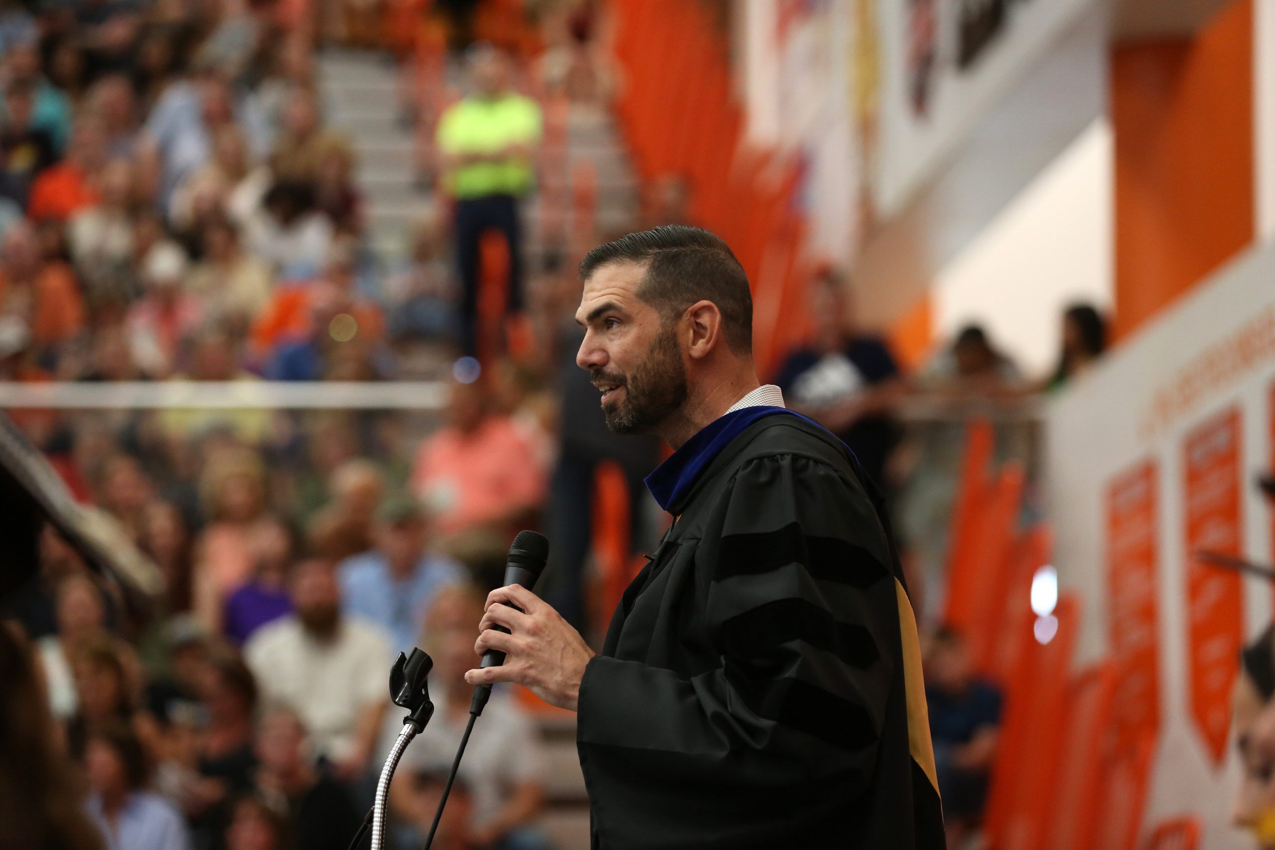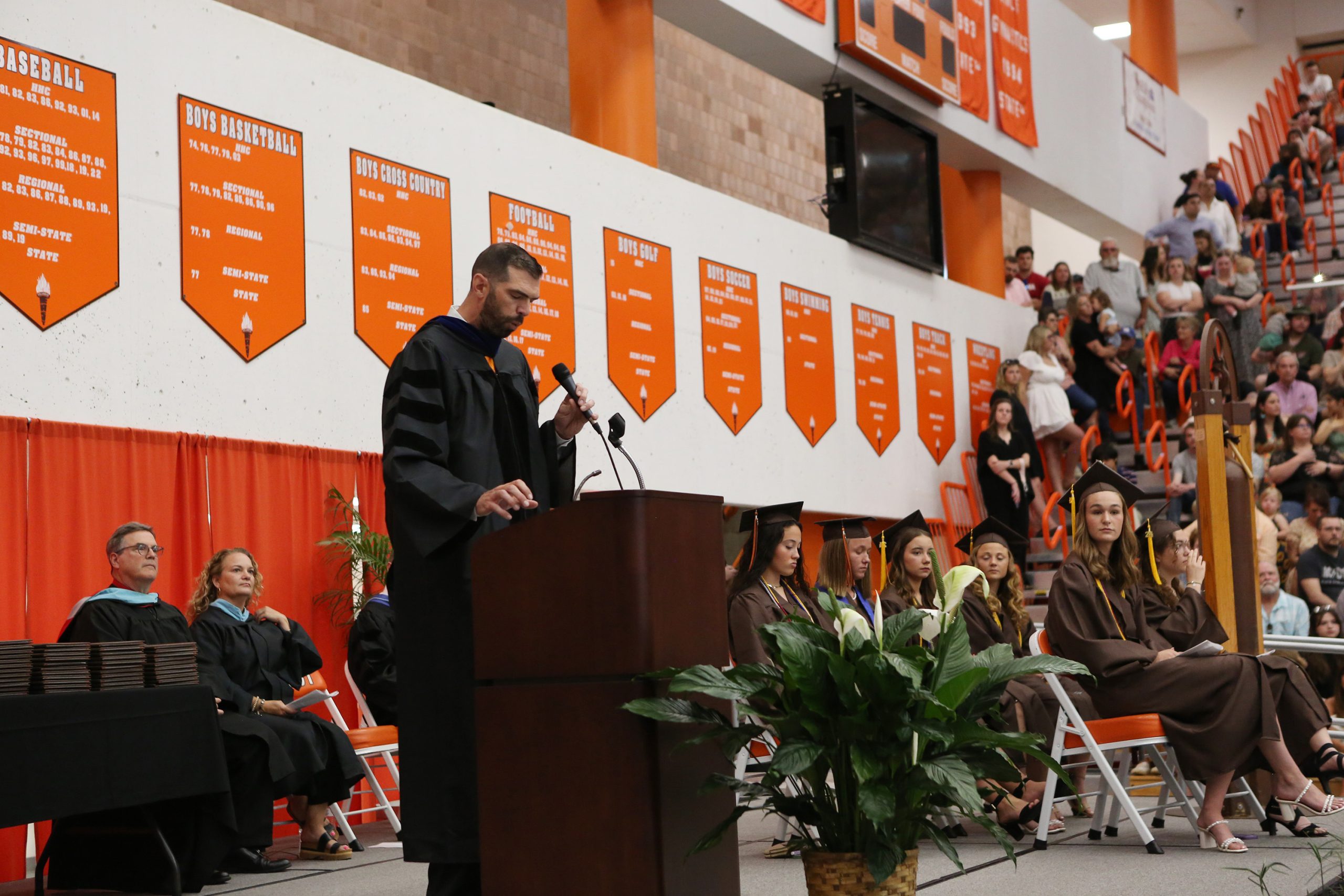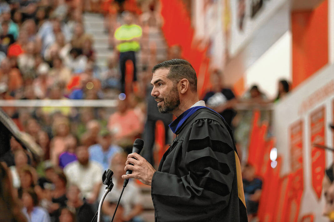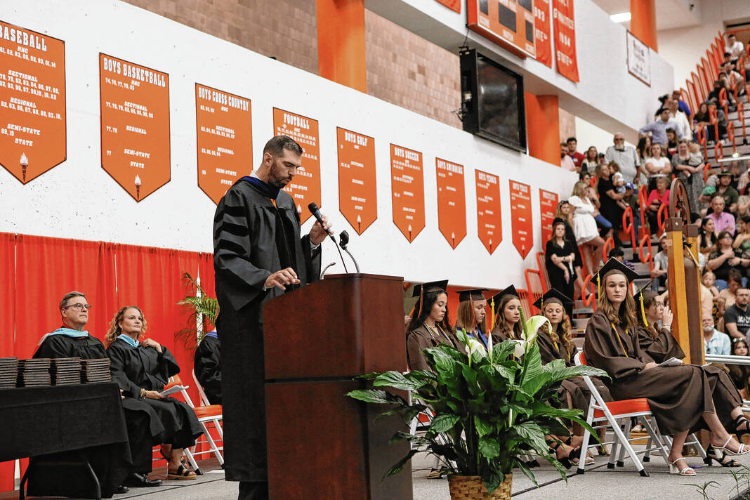 Carla Clark | For The Republic Dr. Michael Parsons, principal, gives the welcome and remarks during the 51st Annual Commencement of Columbus East High School, Columbus, Ind., Saturday, May 25, 2024.