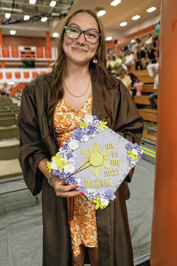 Carla Clark | For The Republic Cheyenne Lund hold her decorated mortarboard during the 51st Annual Commencement of Columbus East High School, Columbus, Ind., Saturday, May 25, 2024.