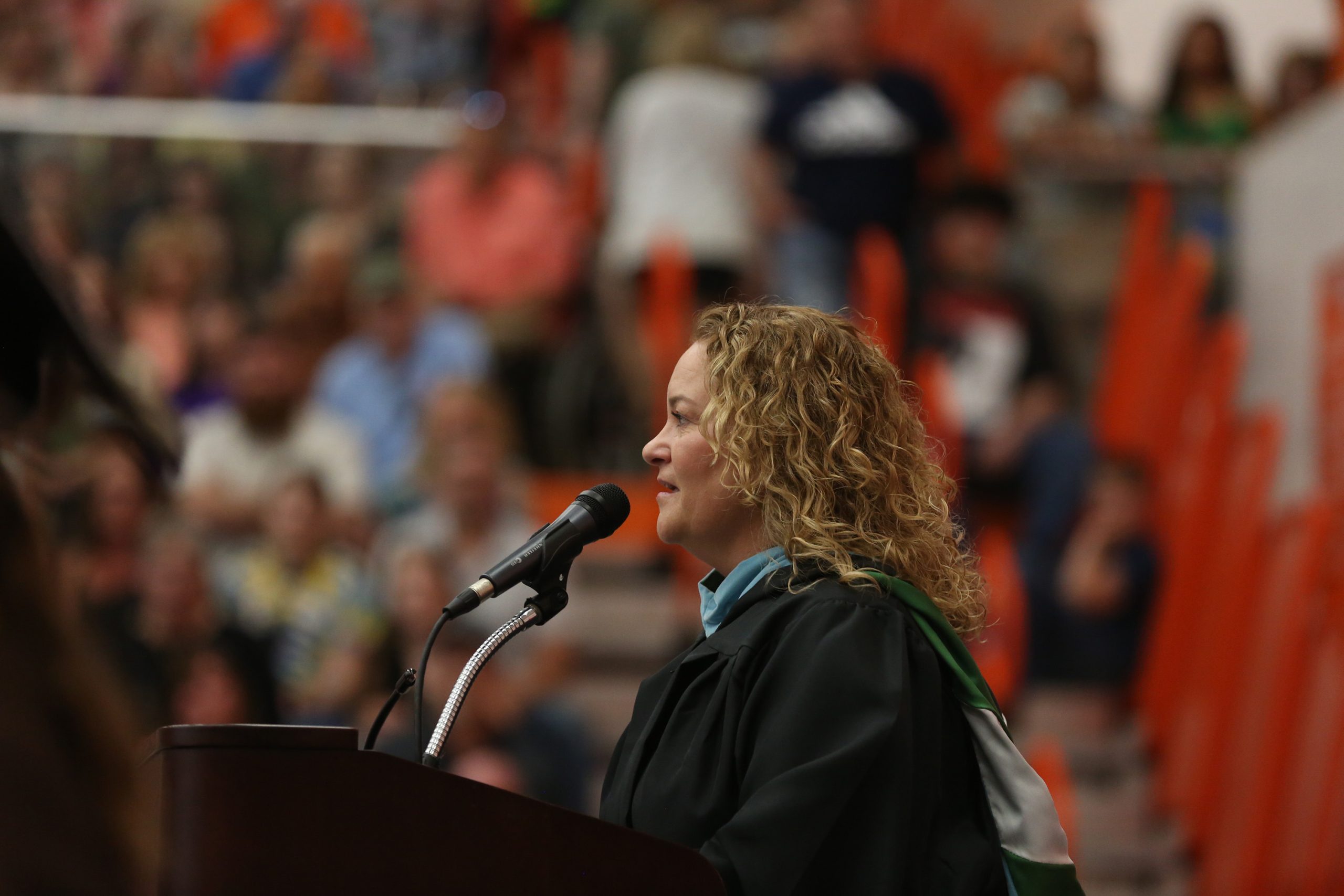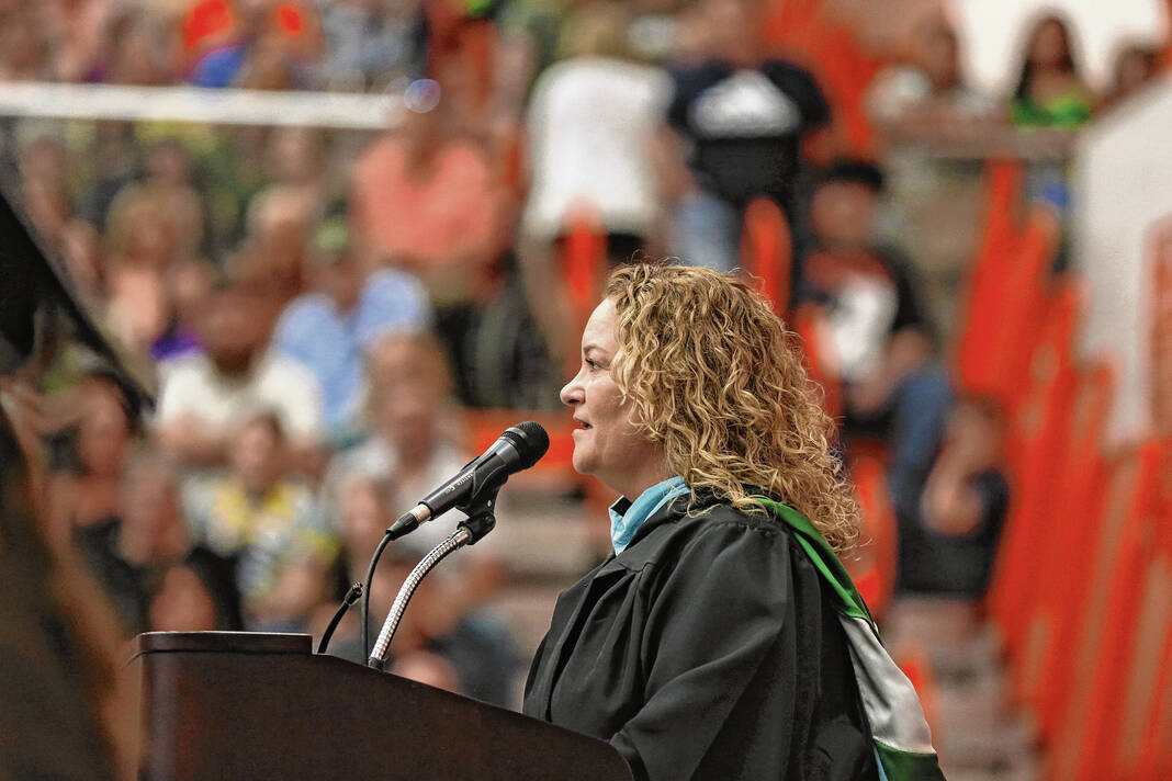 Carla Clark | For The Republic Laurie Chamblee, assistant principal, gives the introduction of the class during the 51st Annual Commencement of Columbus East High School, Columbus, Ind., Saturday, May 25, 2024.