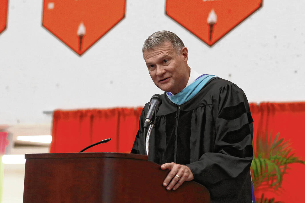 Carla Clark | For The Republic Dr. Jim Roberts, BCSC superintendent, gives his remarks during the 51st Annual Commencement of Columbus East High School, Columbus, Ind., Saturday, May 25, 2024.