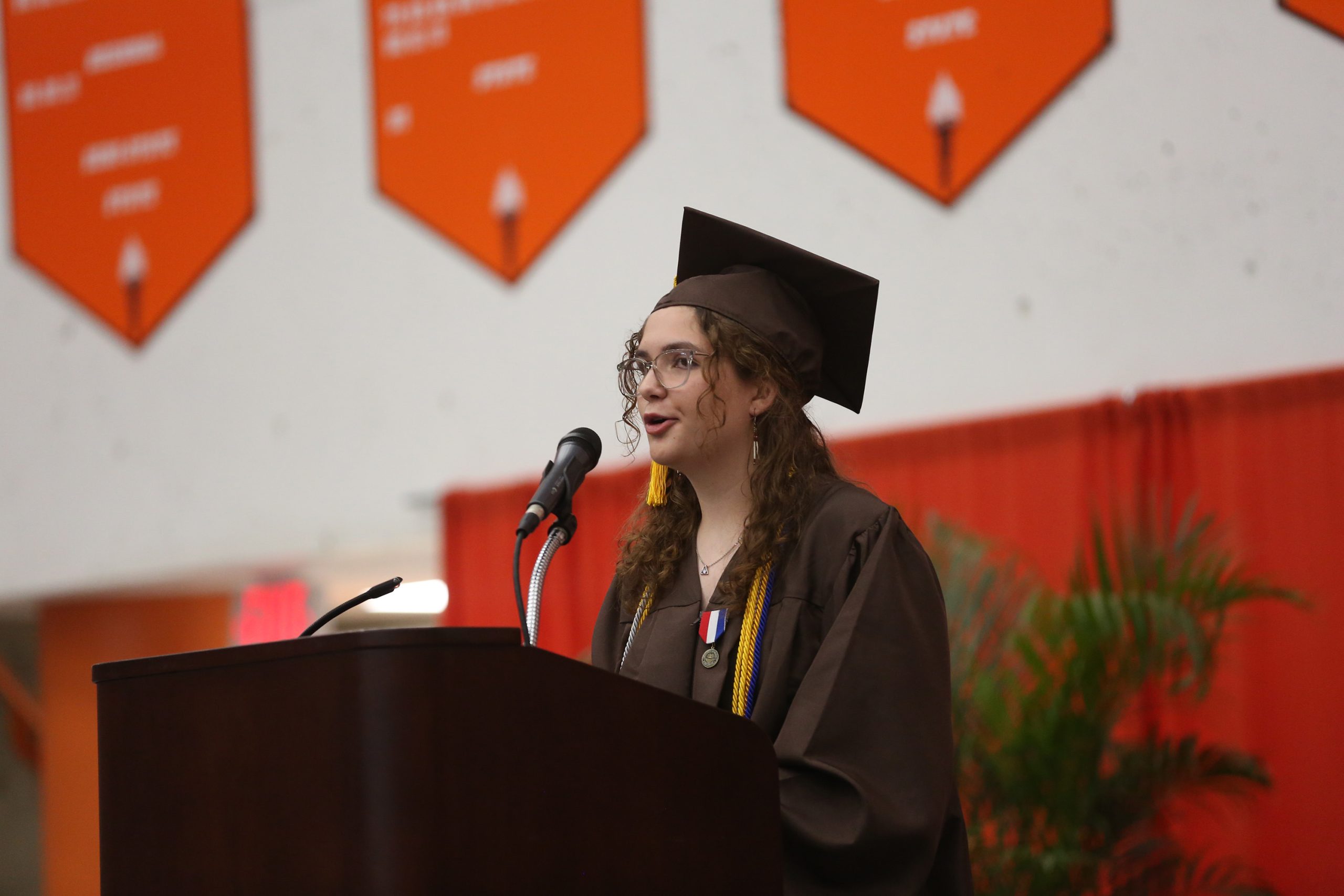 Carla Clark | For The Republic Erin Walters, salutatorian, speaks during the 51st Annual Commencement of Columbus East High School, Columbus, Ind., Saturday, May 25, 2024.