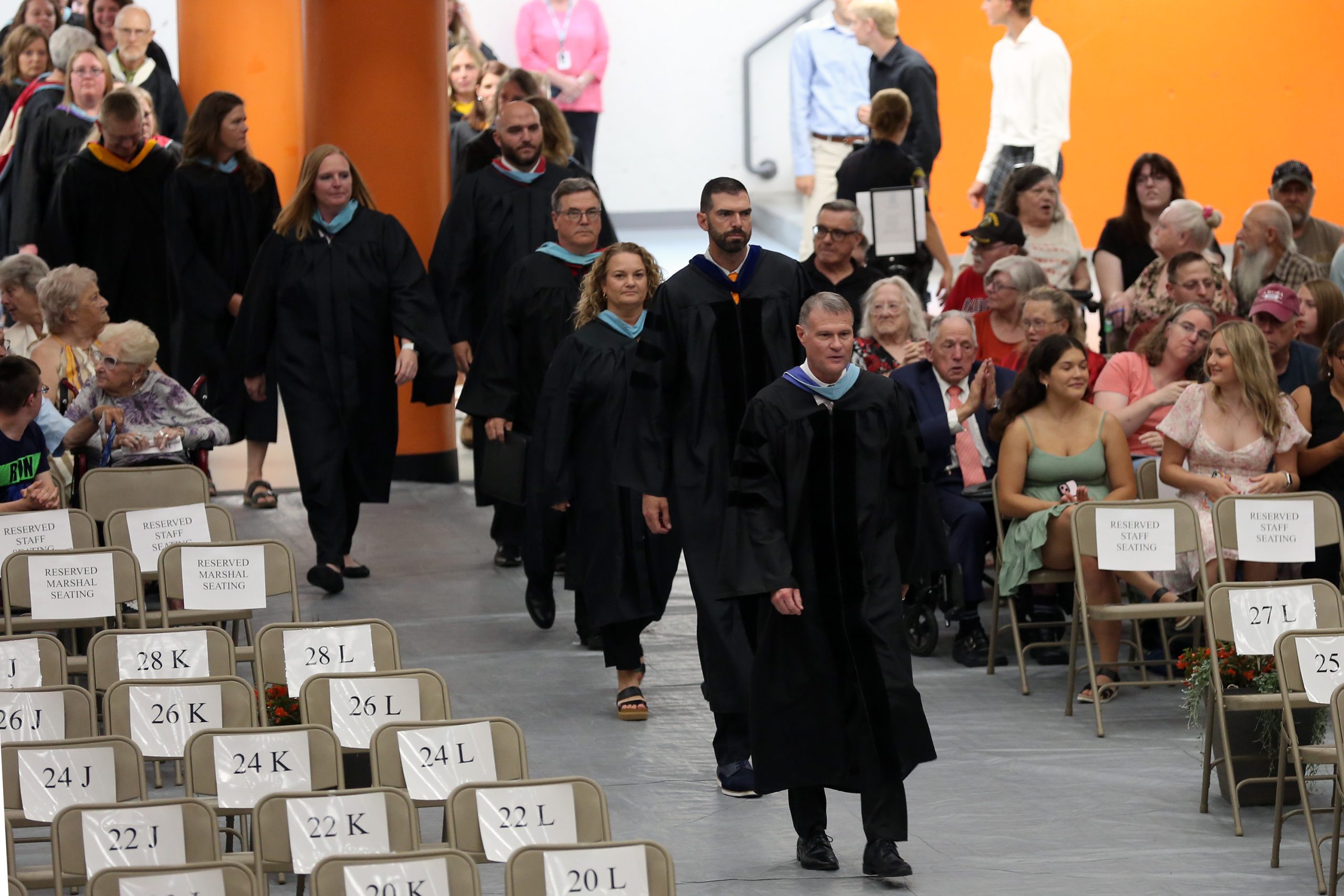 Carla Clark | For The Republic BCSC Superintendent Dr. Jim Roberts leads the building leaders, staff and teachers into the gym during the Fifty-First Annual Commencement of Columbus East High School, Columbus, Ind., Saturday, May 25, 2024.