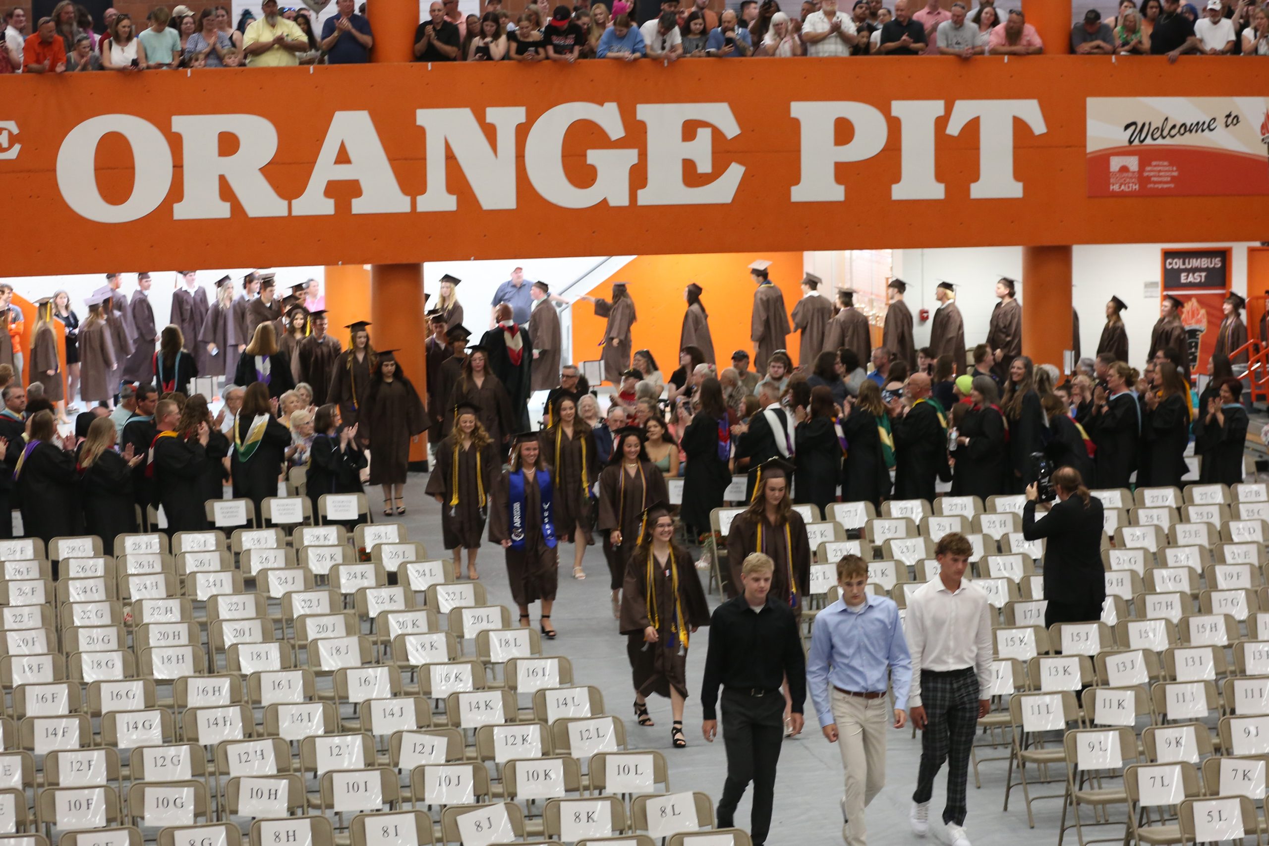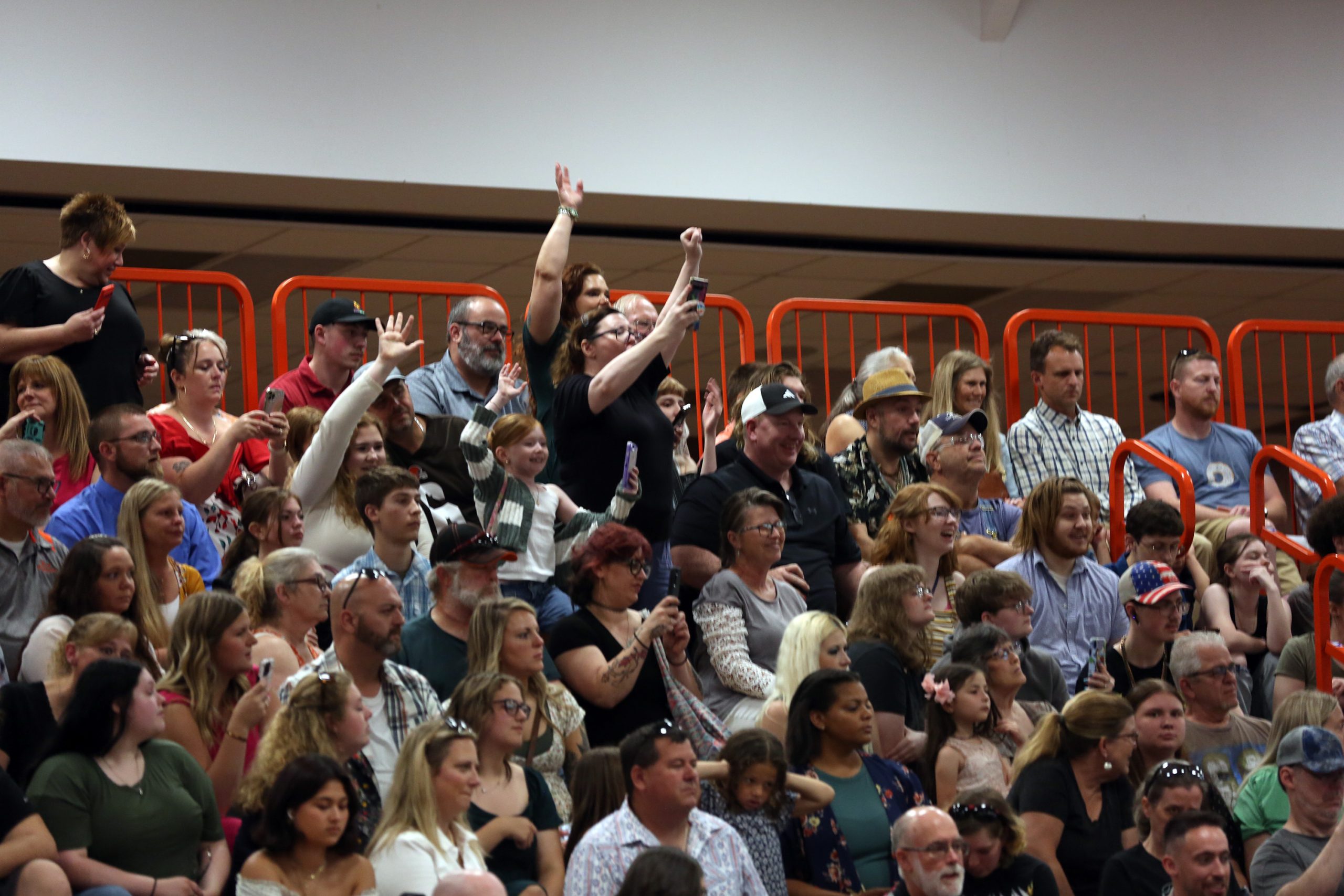 Carla Clark | For The Republic Attendees yell and wave as graduates enter the gym during the Fifty-First Annual Commencement of Columbus East High School, Columbus, Ind., Saturday, May 25, 2024.