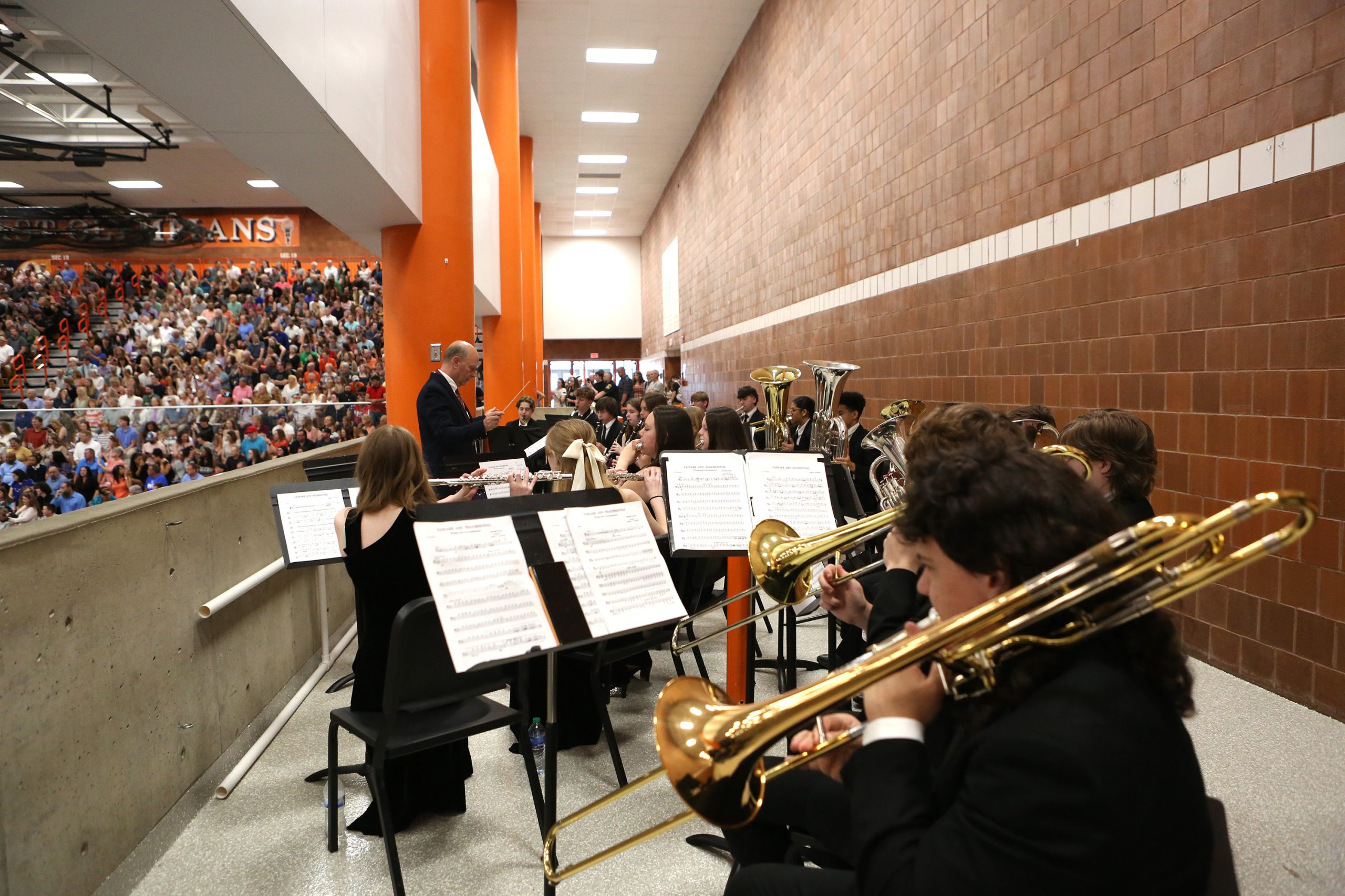 Carla Clark | For The Republic Tim Brookshire, at left, leads the band as they play Pomp and Circumstance during the Fifty-First Annual Commencement of Columbus East High School, Columbus, Ind., Saturday, May 25, 2024.