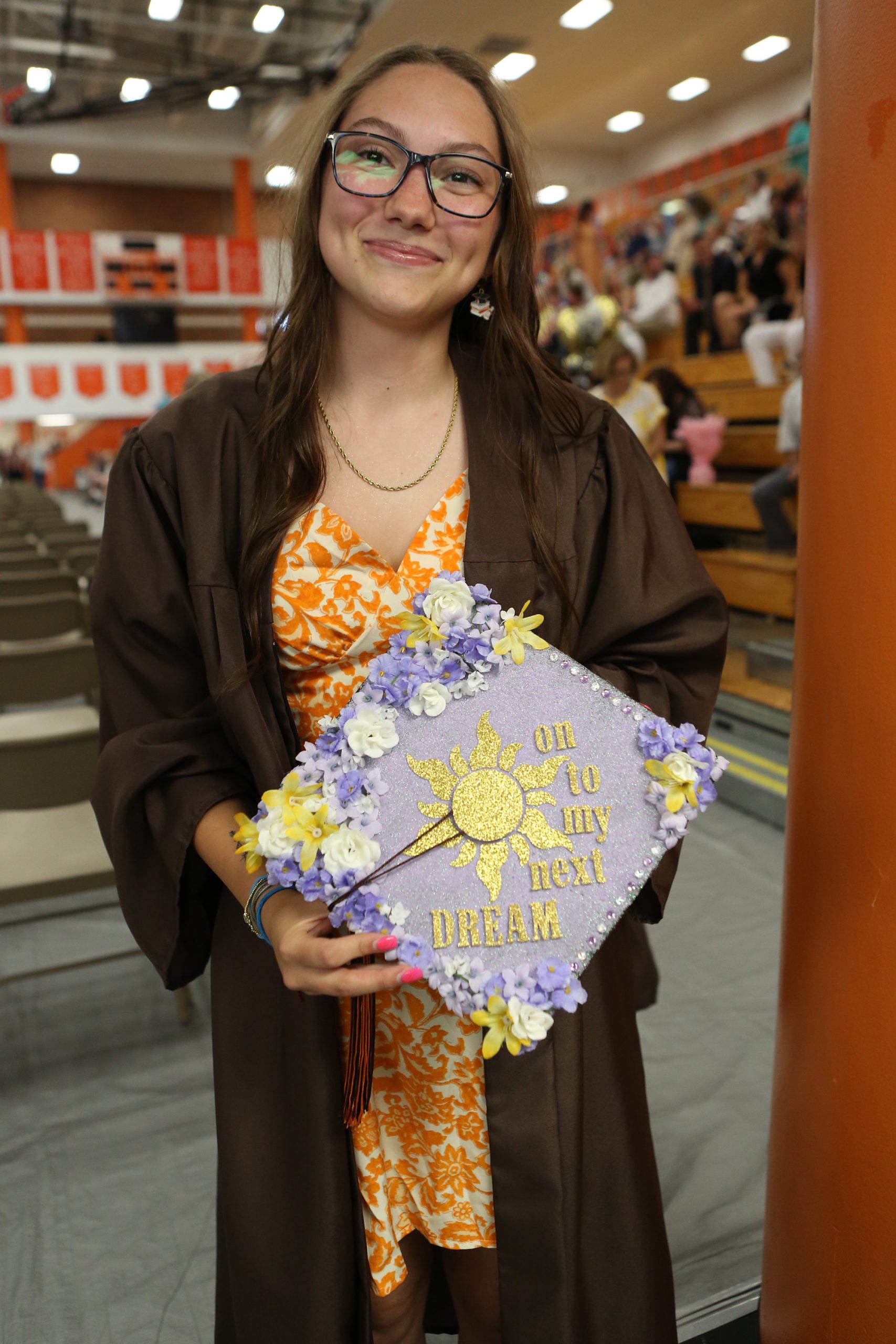 Carla Clark | For The Republic Cheyenne Lund hold her decorated mortarboard during the Fifty-First Annual Commencement of Columbus East High School, Columbus, Ind., Saturday, May 25, 2024.