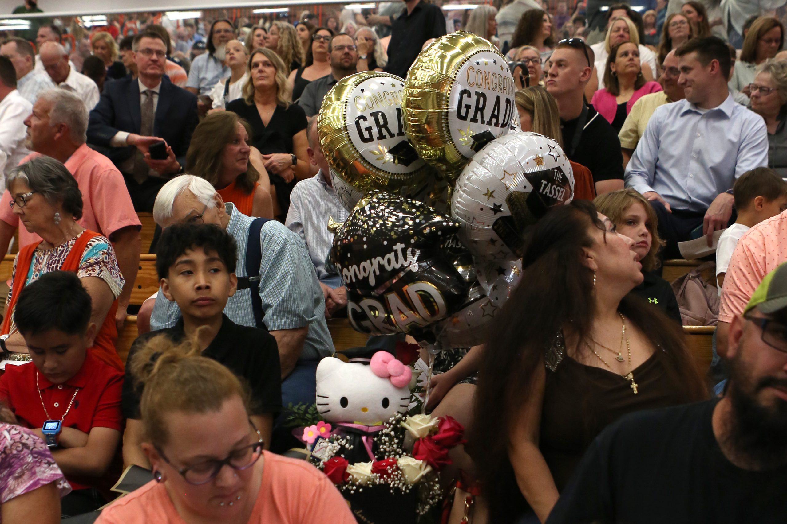 Carla Clark | For the Republic Balloons and a Hello Kitty toy for one of the graduates during the Fifty-First Annual Commencement of Columbus East High School, Columbus, Ind., Saturday, May 25, 2024.