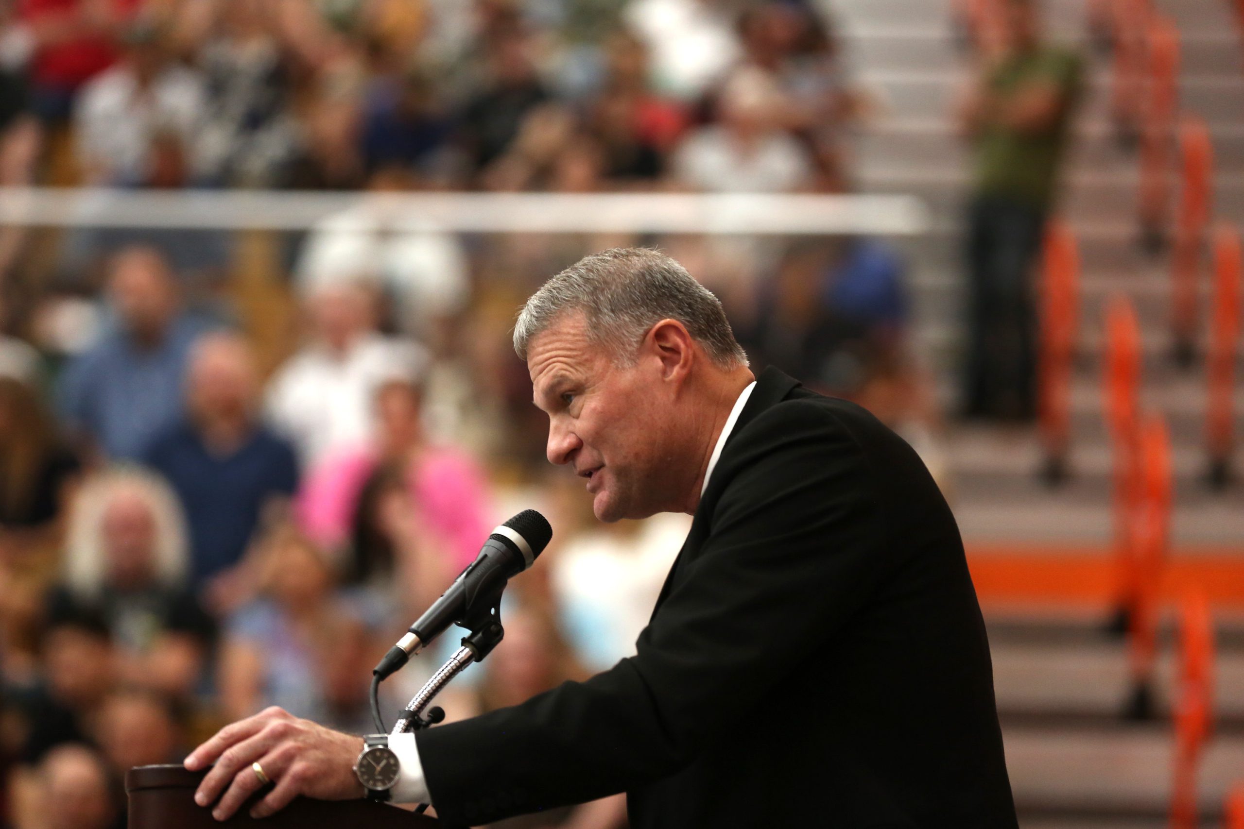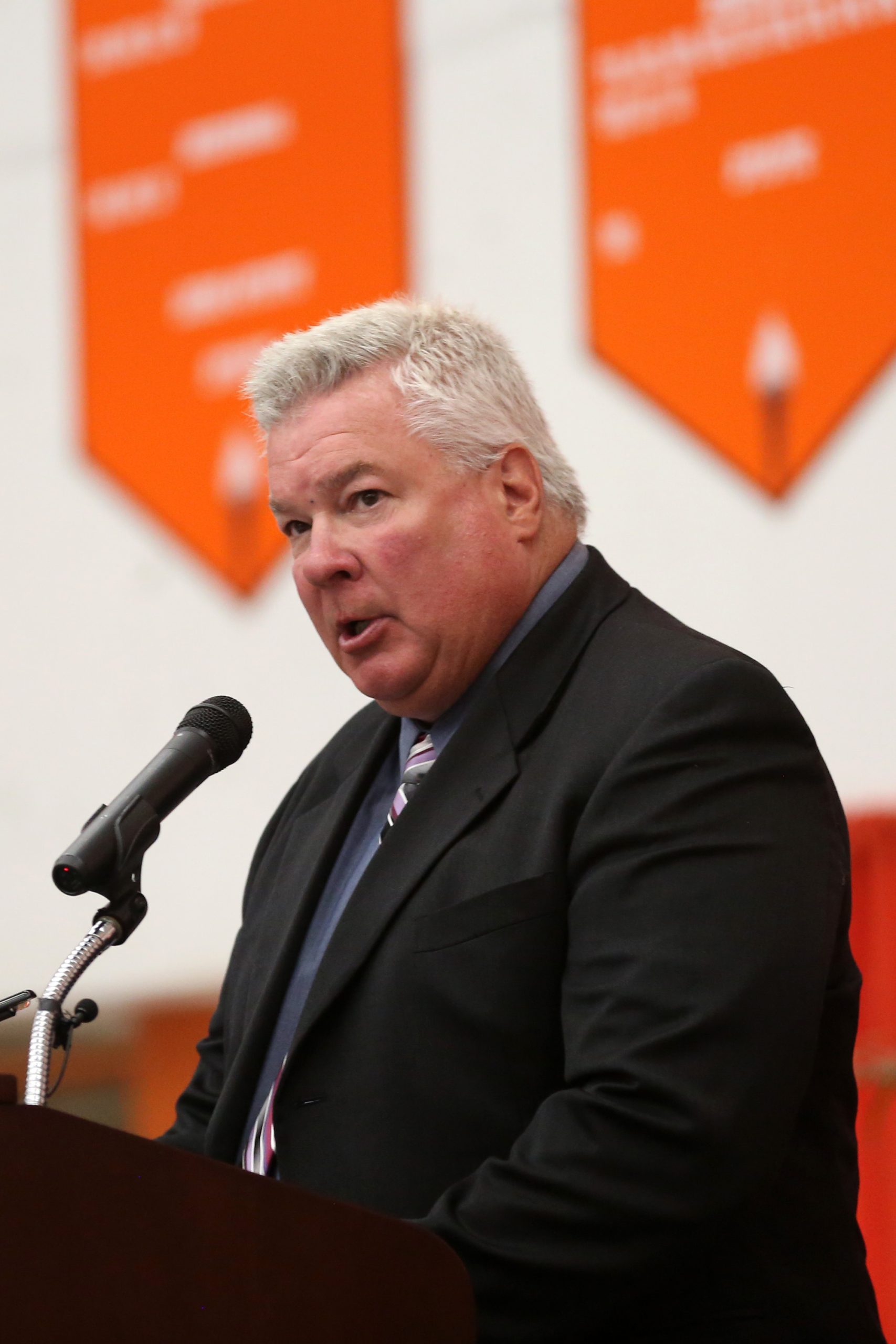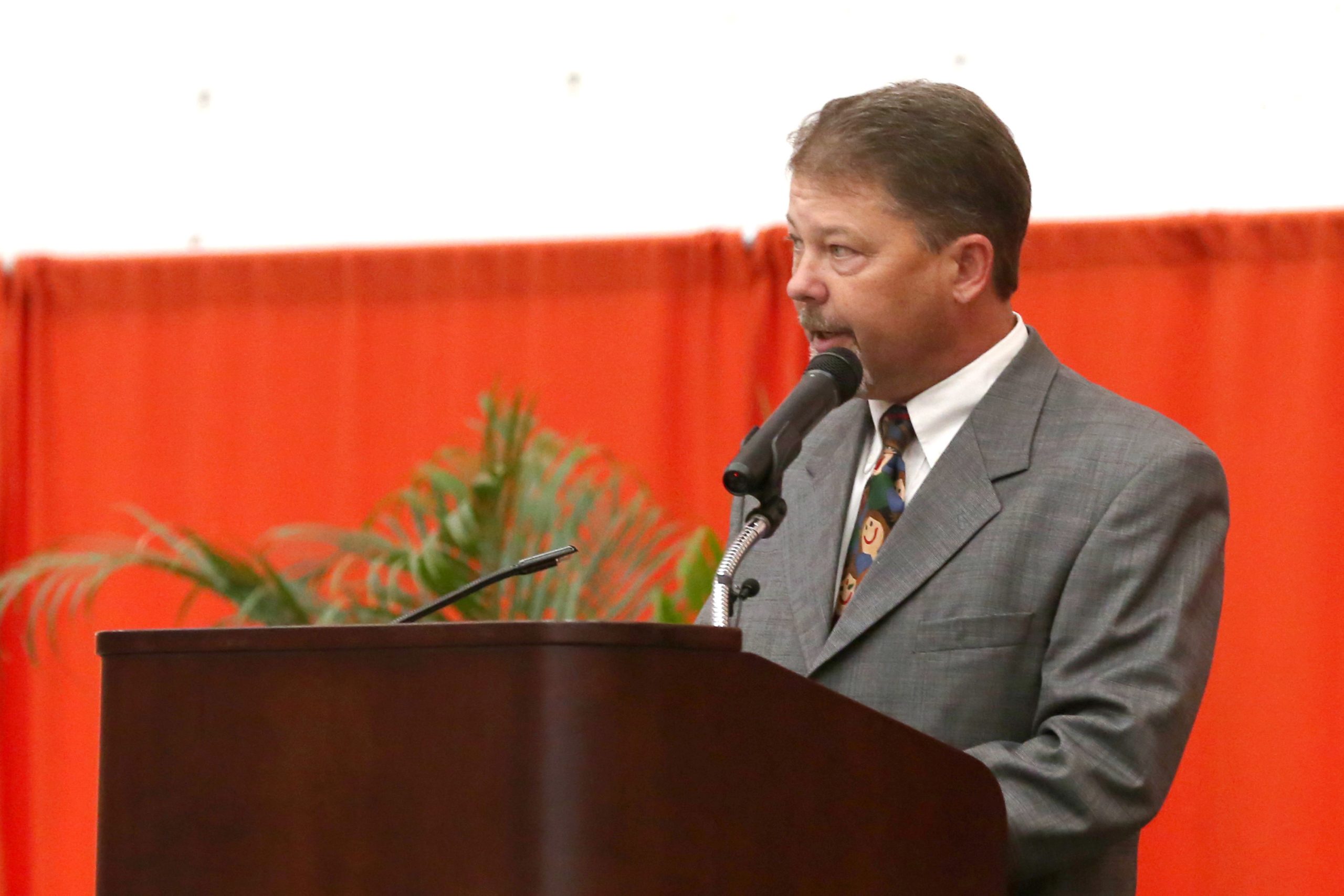 Dr. Jim Roberts gives the superintendent comments during the CSA New Tech Commencement Ceremony at Columbus East High School, Columbus, Ind., Friday, May 24, 2024.
