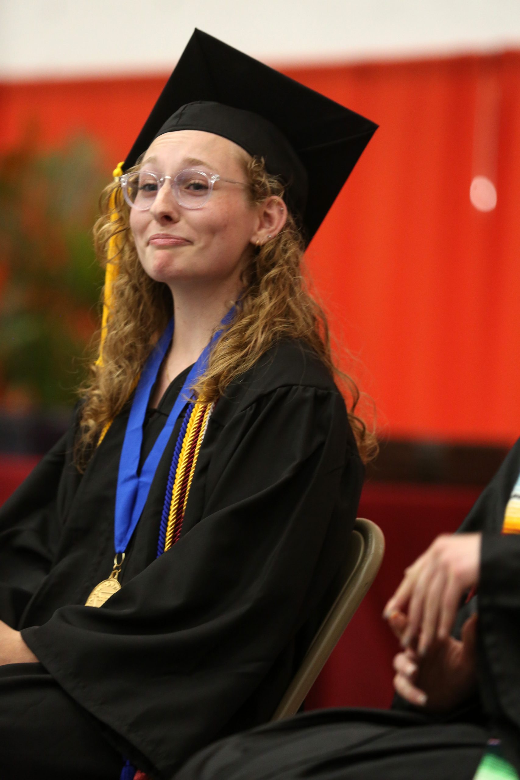 Sabrina Welsh waits for the ceremony to start during the CSA New Tech Commencement Ceremony at Columbus East High School, Columbus, Ind., Friday, May 24, 2024.