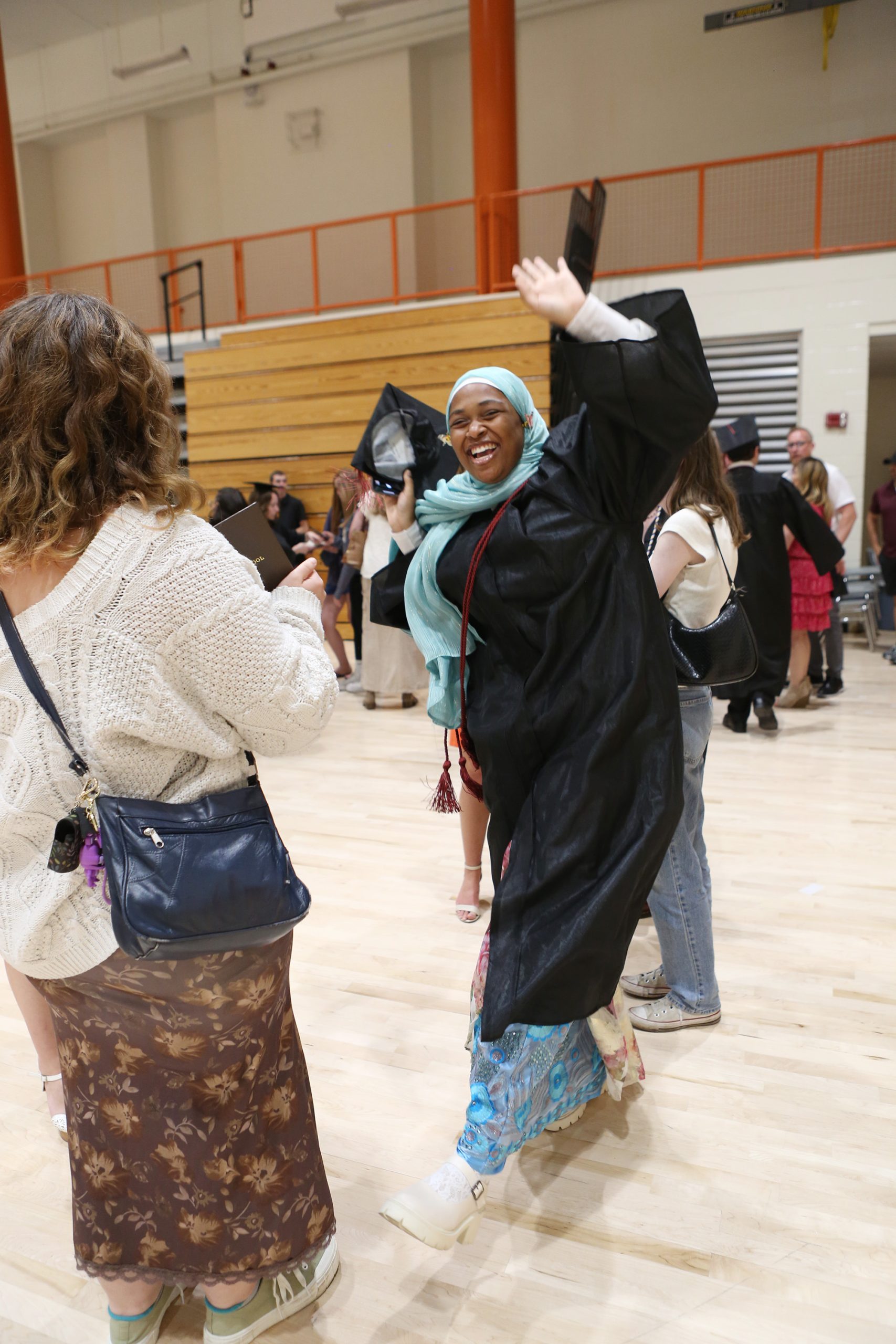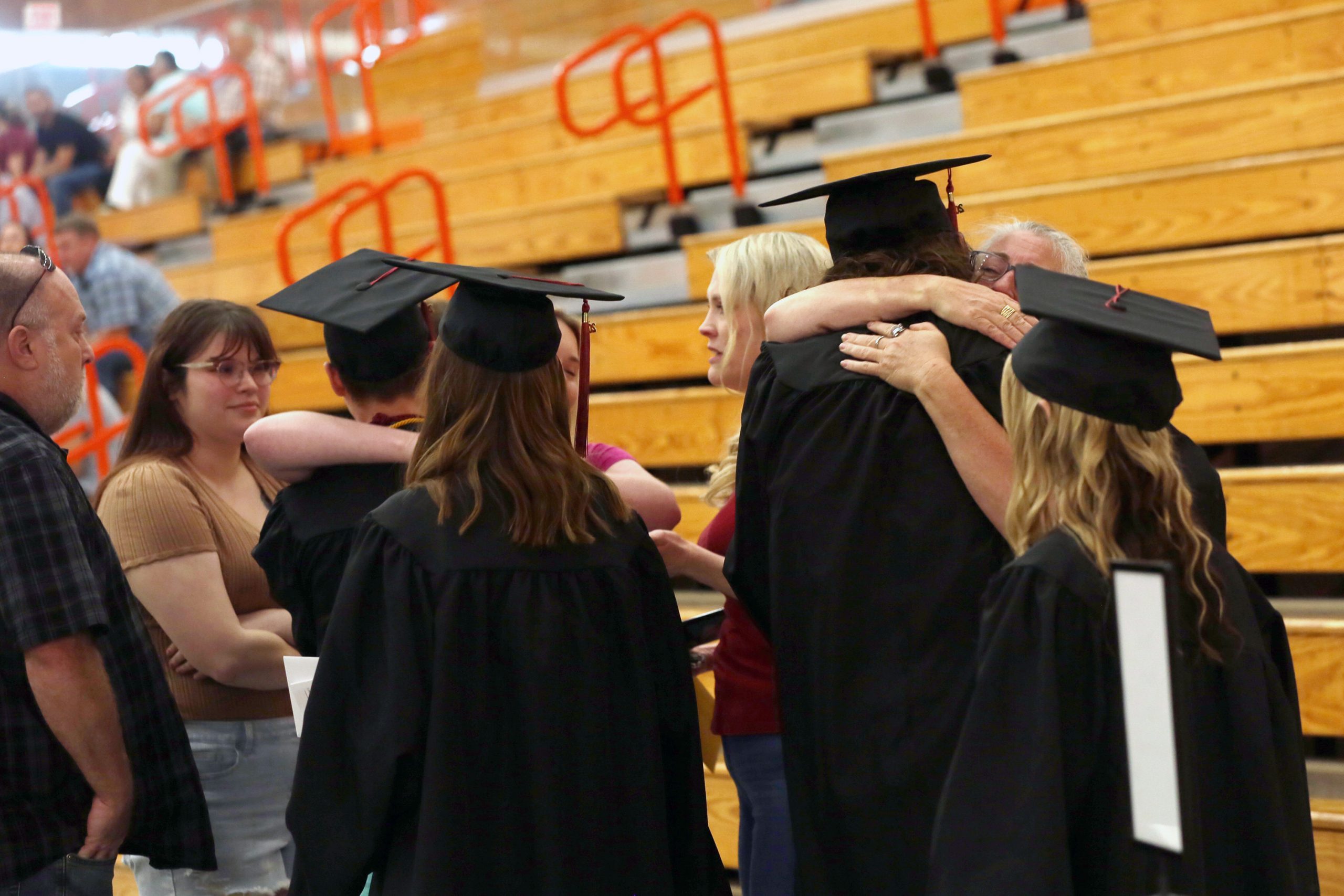 Graduates hug family and friends during the CSA New Tech Commencement Ceremony at Columbus East High School, Columbus, Ind., Friday, May 24, 2024.
