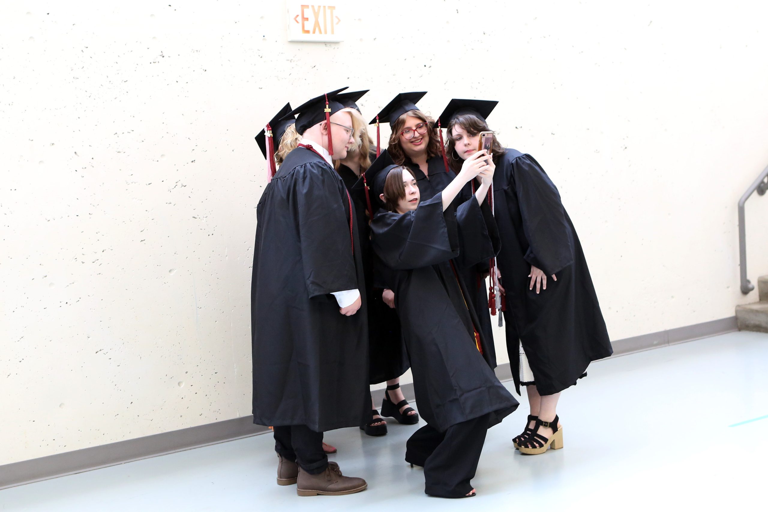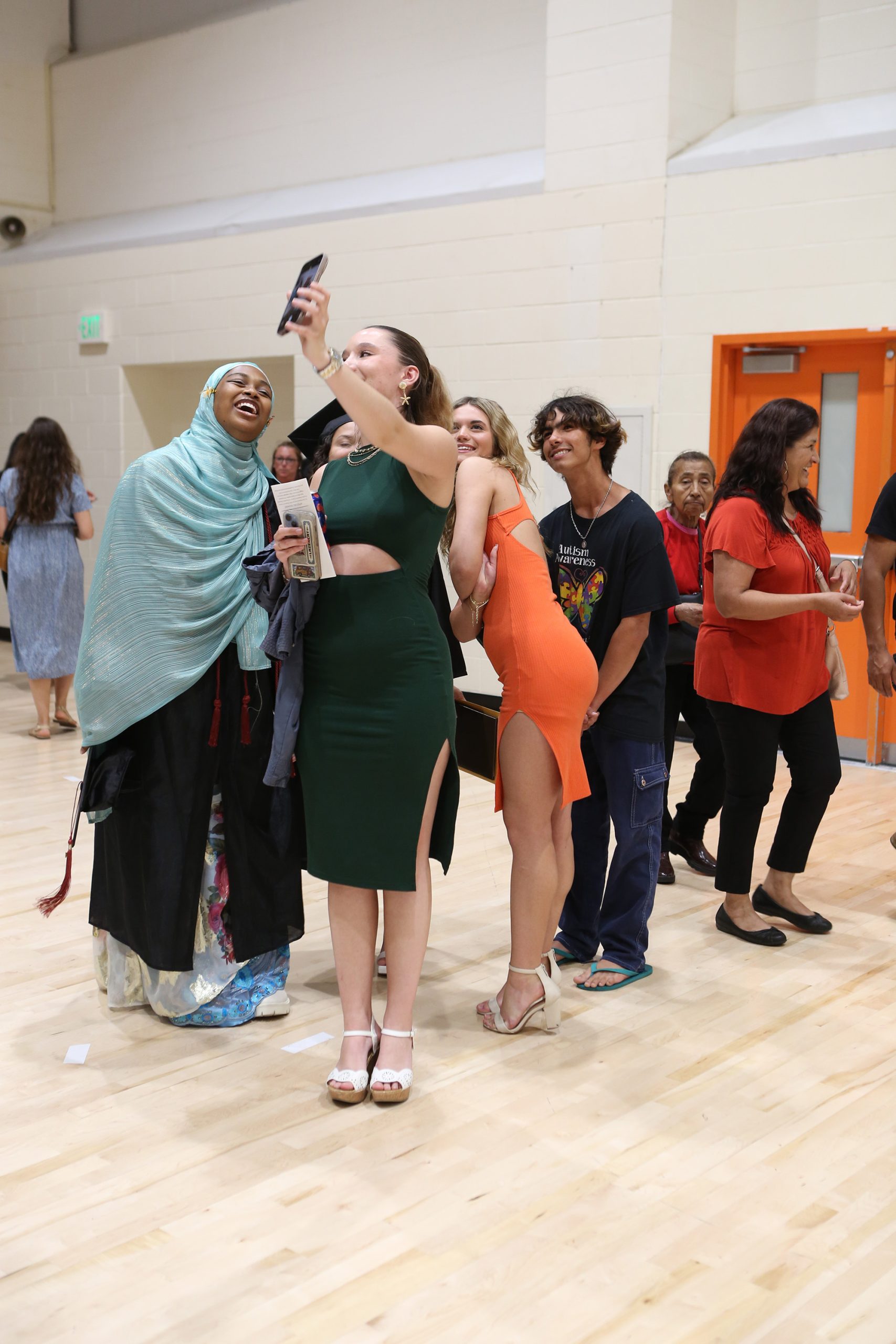 Students take selfies during the CSA New Tech Commencement Ceremony at Columbus East High School, Columbus, Ind., Friday, May 24, 2024.
