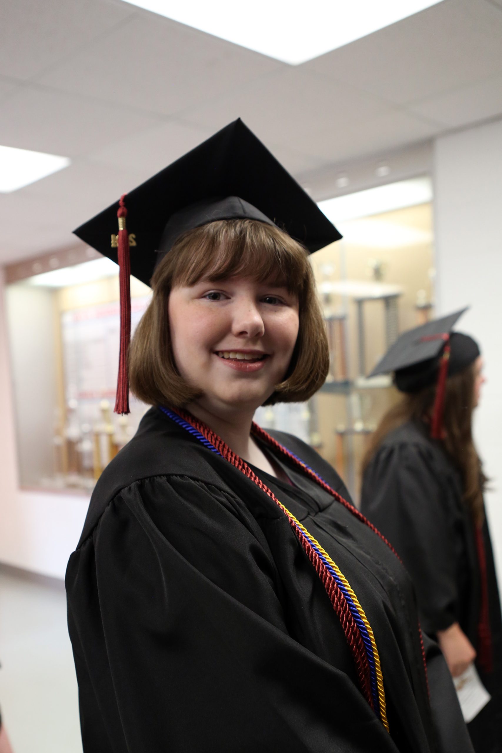 Sophie Rafferty smiles during the CSA New Tech Commencement Ceremony at Columbus East High School, Columbus, Ind., Friday, May 24, 2024.