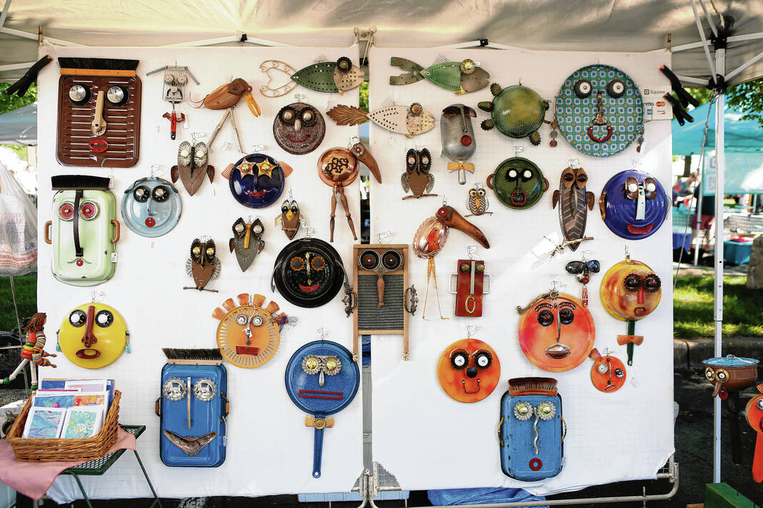 Carla Clark | For The Republic The Found Art Faces and Figures by Larry and Marilyn Brackney booth at the Columbus Farmers Market, Columbus, Ind., Saturday, May 11, 2024.