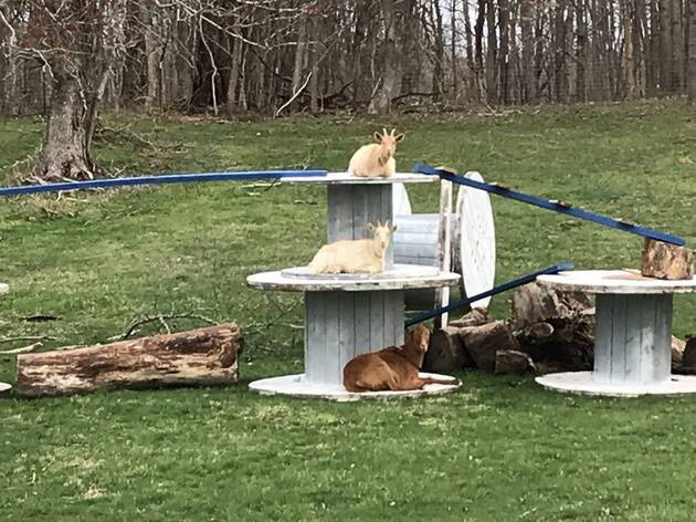 Jerry Maulin photographed three goats on their playground. As if posed and aligned, Ms. Penelope, Char, and Jo Jo (top to bottom) seem to be indicating they are ready for their glamour shot.
