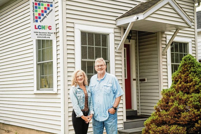 Photo by Angela Jackson, for The Republic Lincoln-Central Neighborhood Family Center leaders Randy Allman and Diane Doup are shown outside the nonprofit’s office at 1039 Sycamore St. in downtown Columbus.