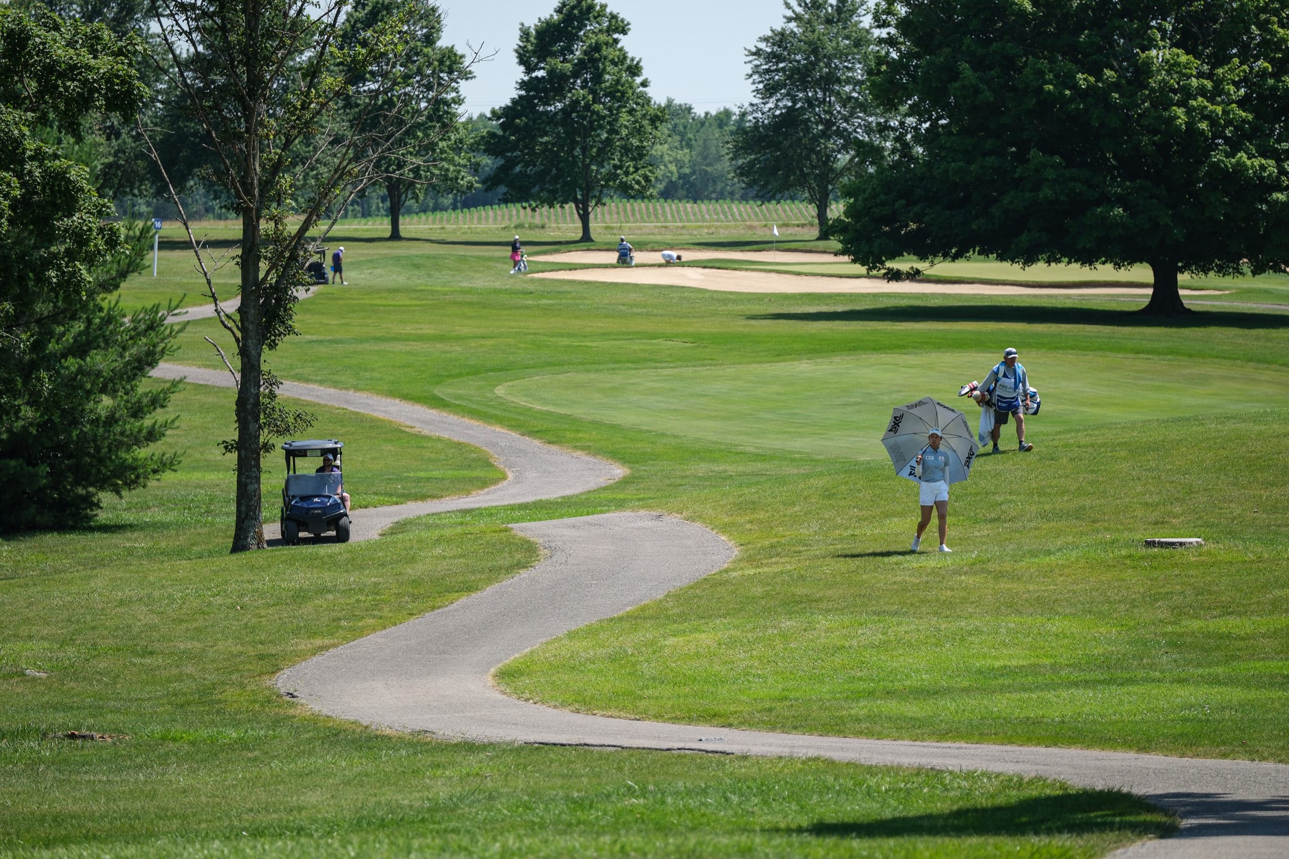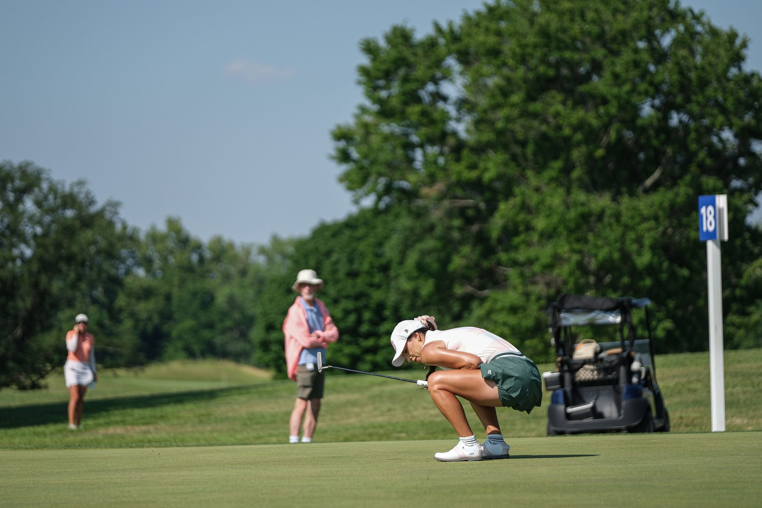 Going back to No. 18 for the playoff, Zhang hit her drive under the lip of a sand trap. She was able to get out of the trap, then hit her third shot on the back fringe before chipping on and sinking a 7-footer for par after Vilaubi had left her birdie putt short.