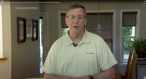 The footage of Krisher was taken from an AP video published on June 13 about a Tesla shareholder vote to restore CEO Elon Musk’s $44.9 billion pay package that was thrown out by a Delaware judge earlier this year. Krisher covers the auto industry for the AP, Meir confirmed.