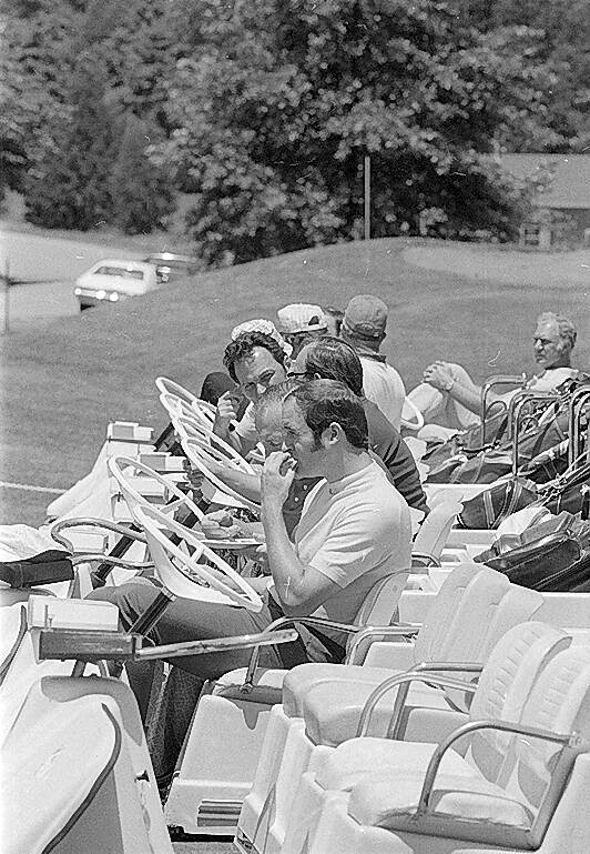 Indiana University Assistant Basketball Coach Bob Weltich gets a quick bite to eat before his round of golf on June 20, 1974, at the Harrison Lake County Club. Weltich was one of several IU coaches on hand for the 15th annual Columbus IU Varsity Club golf outing and dinner.