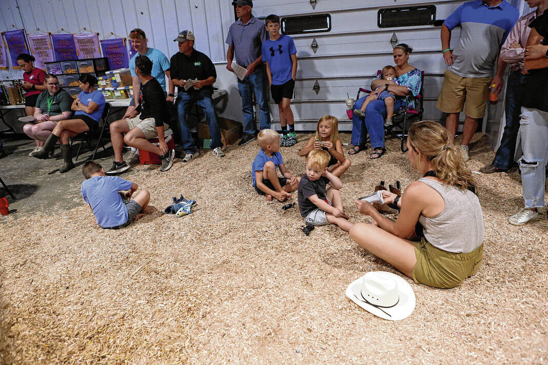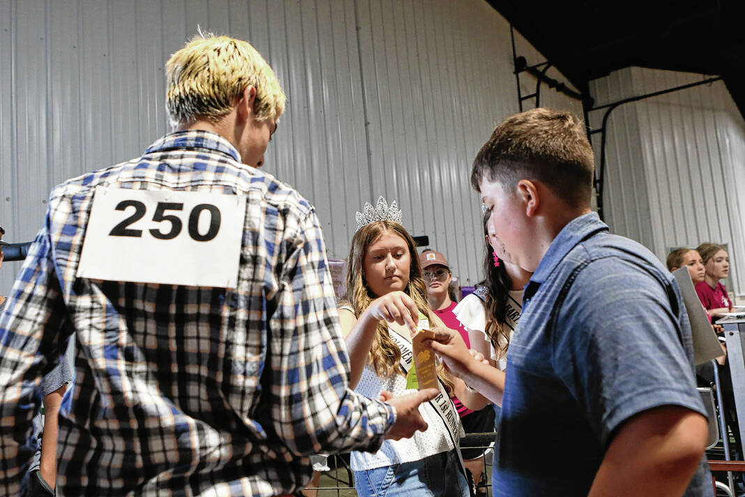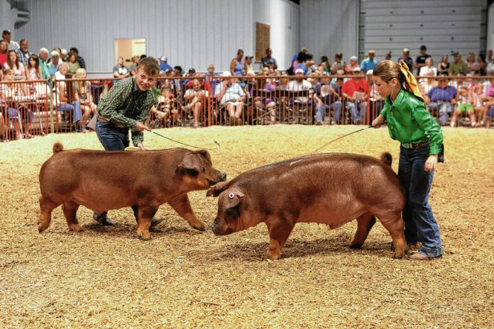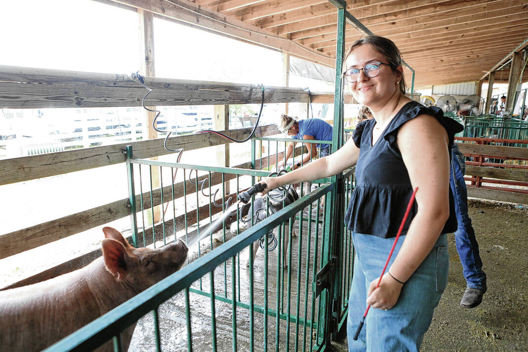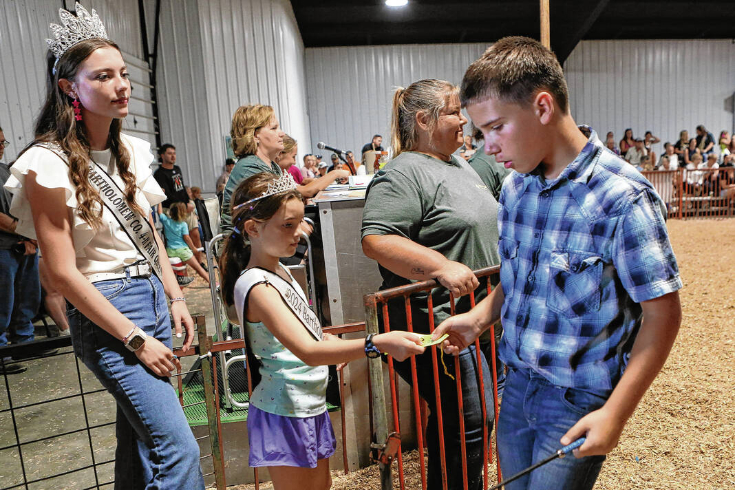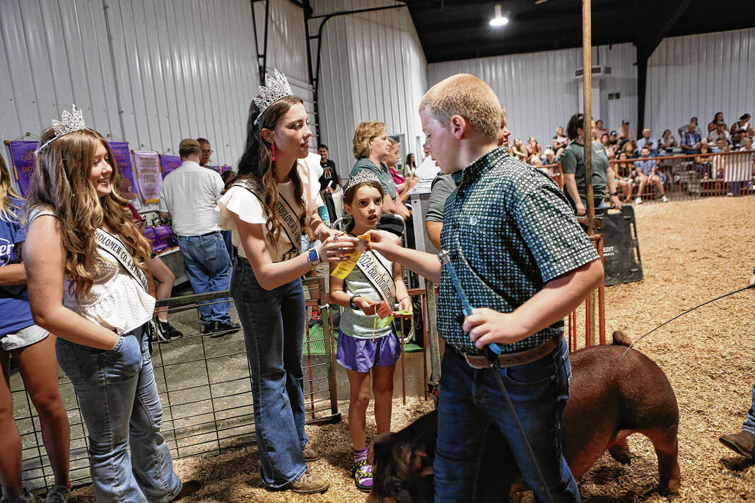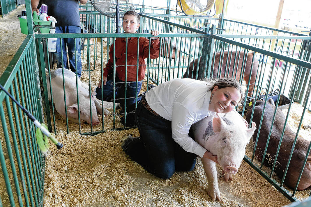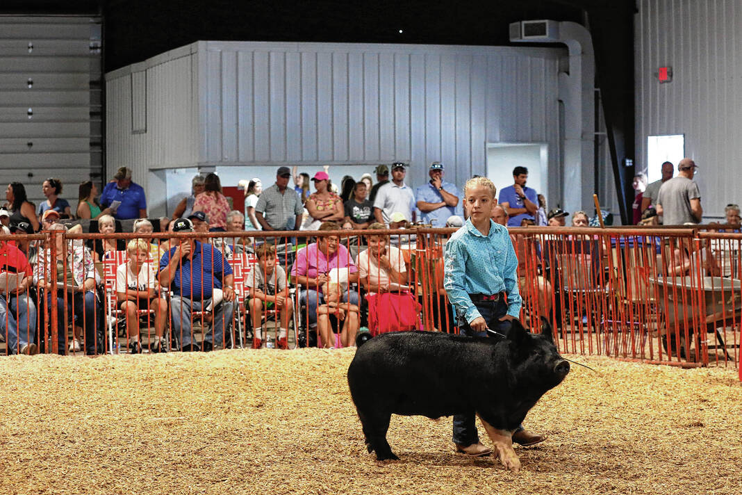 Carla Clark | For The Republic Brody Hege, at left, and Andi Hege show their Durocs during the 4-H barrow show in the livestock pavillion at the Bartholomew County 4-H Fair at the Bartholomew County Fair Grounds, Columbus, Ind., Tuesday, June 25, 2024