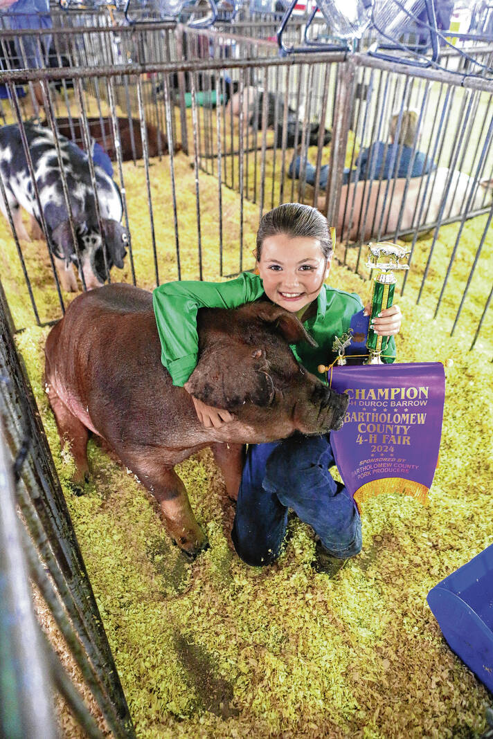 But from the moment Andi entered the ring, the Hope Elementary student kept her focus on maintaining control of her 279 pound pig while simultaneously looking out for unexpected behavior from other barrows. In addition, she was keeping track of what event judge Tyler Johnson of Greensburg was doing.