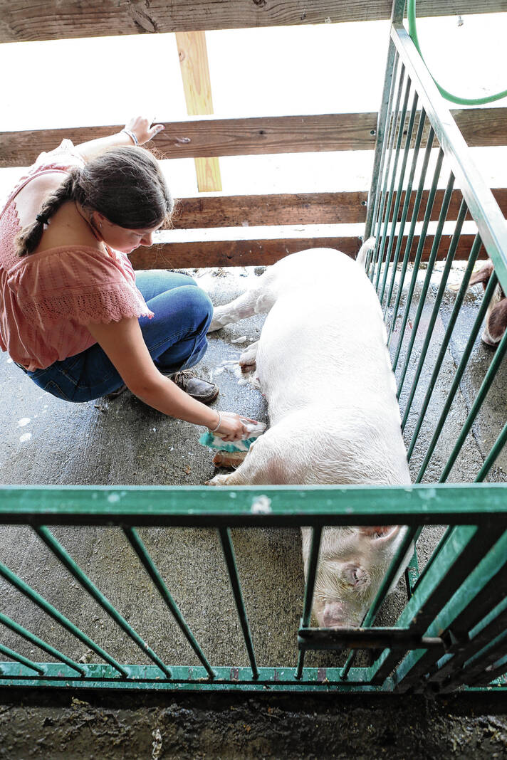 Now in his second year of showing pigs, Levi Tobias said he’s learned to increase protein in the feed for his Berkshire because his pigs were too small last year. The Columbus North High School student also said he’s also learned how to lead his animals better, as well as improve his showmanship.
