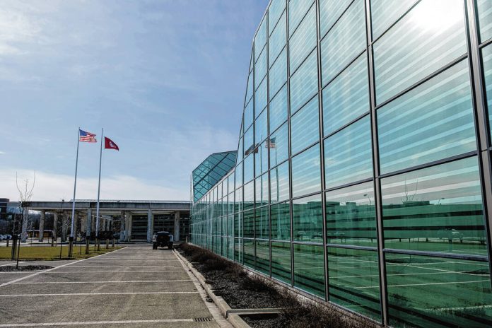 Mike Wolanin | The Republic A view of the Cummins building adjacent to the Irwin Conference Center in Columbus, Ind., Monday, February. 26, 2024.