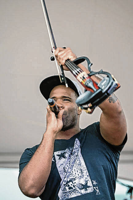 Kev Sylvester of Black Violin performs during Live on the Plaza on June 27, 2014, at the newly opened library plaza in Columbus.