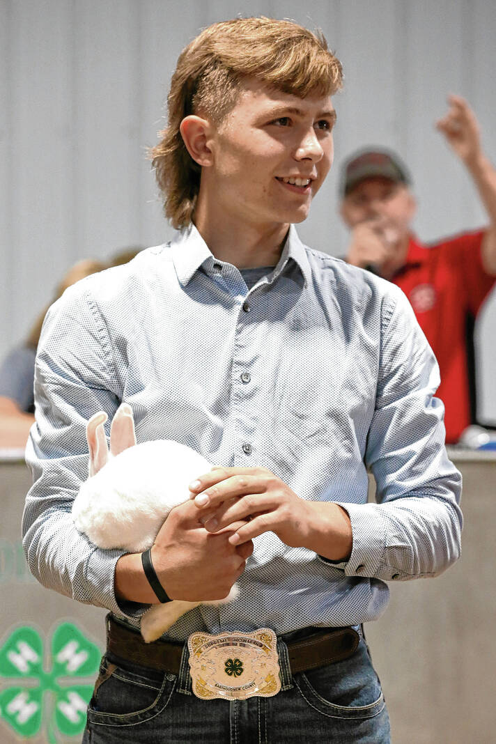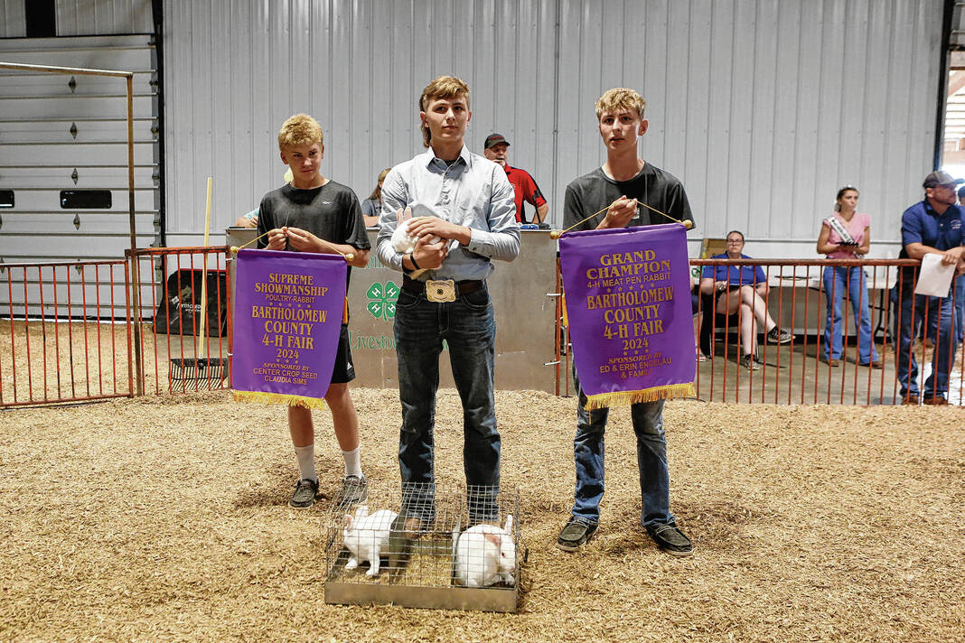 Grand Champion Rabbit Meat Pen: raised by Elijah Harrison; $1,300 sale price. Buyer: Columbus Industrial Electric