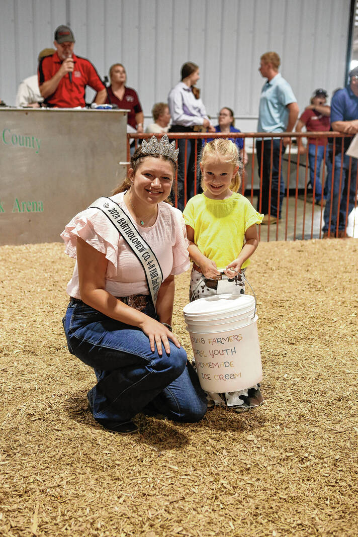 Bartholomew County Young Farmers Ice Cream: $4,500 sale price. Buyer: The Whittington Family and the “Moose”. Bartholomew County Rural Youth is matching$3,000, bringing the total to $7,500 for the Vicki Schwartzkopf Scholarship Fund.
