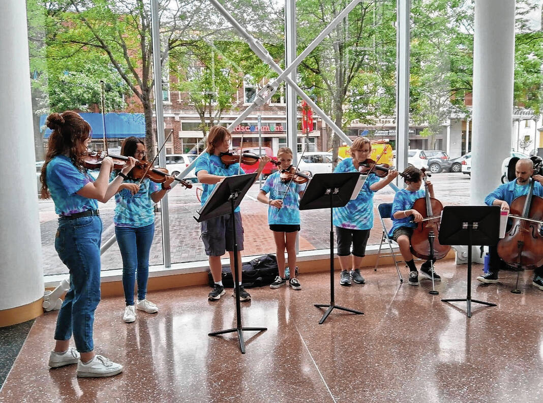 Photo provided A few members of the Columbus Youth Orchestra kicked off the Sidewalk Sounds summer series last week.