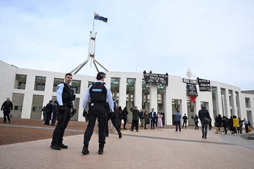 MELBOURNE, Australia (AP) — Pro-Palestinian protesters breached security at Australia’s Parliament House to unfurl banners from the roof on Thursday as a senator quit the government over its direction on the Gaza war.