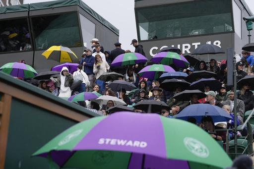 LONDON (AP) — Rain delayed play in the morning for a second straight day at Wimbledon on Saturday, with organizers already having some catching up to do after several matches were suspended overnight.