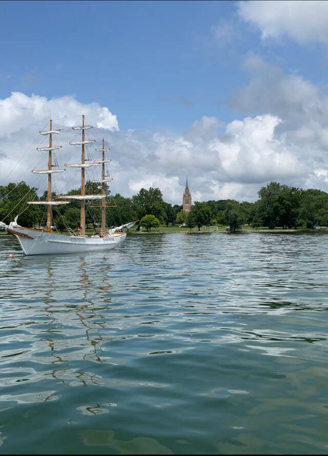 JoAnn Ferguson took this photo of a sailboat at the Culver Military Academy with the Culver Chapel in the background.