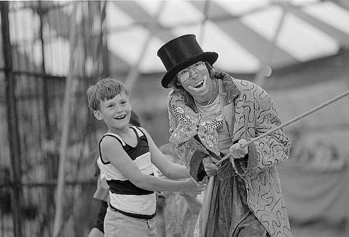 Reporter J.D. Lewis donned the familiar garb of a circus clown to report on circus life from a performer’s viewpoint on July 9, 1974, when the George Matthews Great London Circus set up for two shows at the Bartholomew County 4-H Fairgrounds.