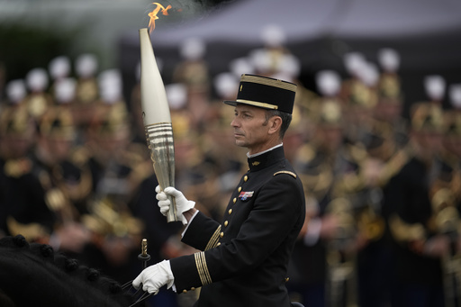 PARIS (AP) — Paris hosted an extra-special guest for France’s national holiday Sunday — the Olympic flame lighting up the city’s grandiose military parade for Bastille Day.
