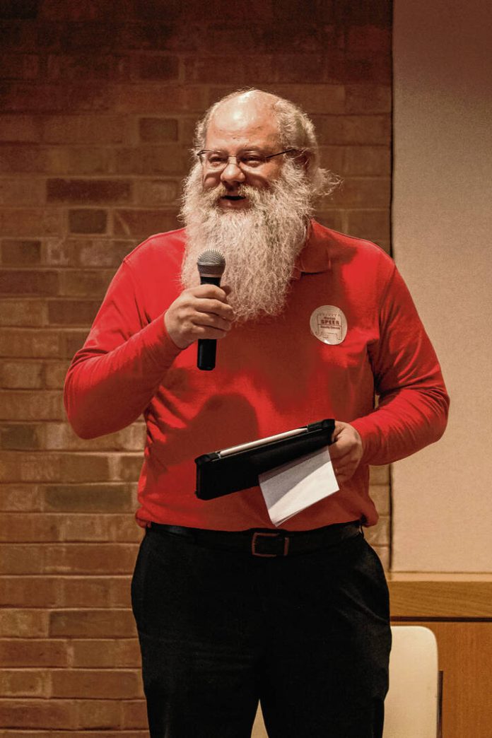 Mike Wolanin | The Republic Republican Bartholomew County Council At-Large candidate Marcus Speer addresses guests during a candidate forum in the Red Room at the Bartholomew County Public Library in Columbus, Ind., Thursday, April 11, 2024. The forum was organized by the Bartholomew County Republican Ladies League.
